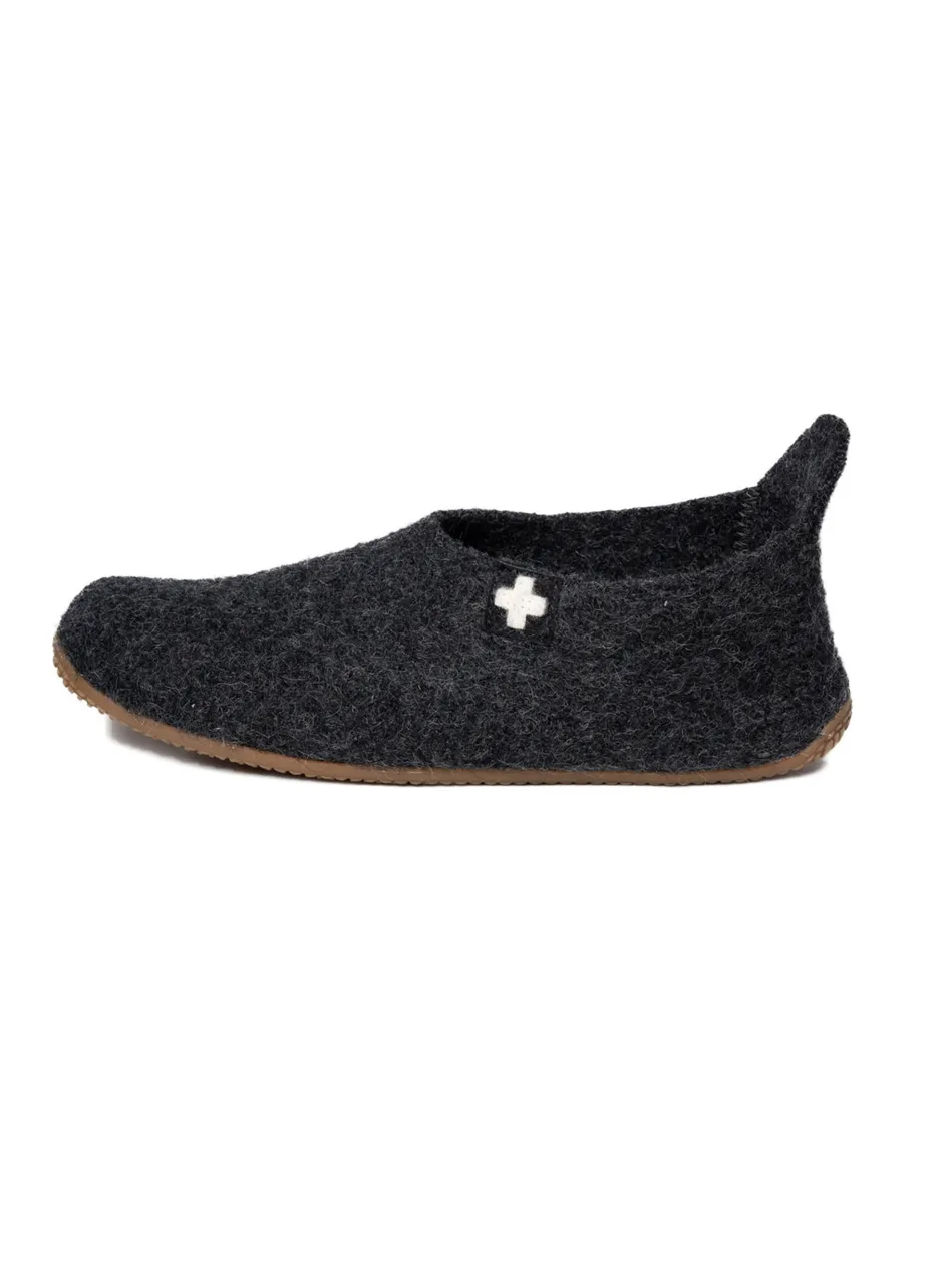 Klassischer Hüttenschuh mit breitem Strickbündchen aus 100% reiner Schurwolle und Fersenkappe aus Leder. Die rutschhemmende und abriebfeste Sohle imitiert durch ihre besondere Flexibilität das Gefühl von gesundem Barfußlaufen. Das natürliche Material ist atmungsaktiv, temperaturregulierend und antibakteriell.