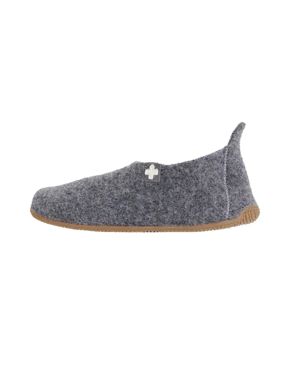 Klassischer Hüttenschuh mit breitem Strickbündchen aus 100% reiner Schurwolle und Fersenkappe aus Leder. Die rutschhemmende und abriebfeste Sohle imitiert durch ihre besondere Flexibilität das Gefühl von gesundem Barfußlaufen. Das natürliche Material ist atmungsaktiv, temperaturregulierend und antibakteriell.
