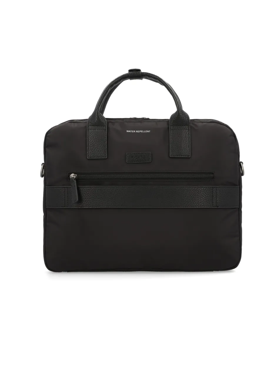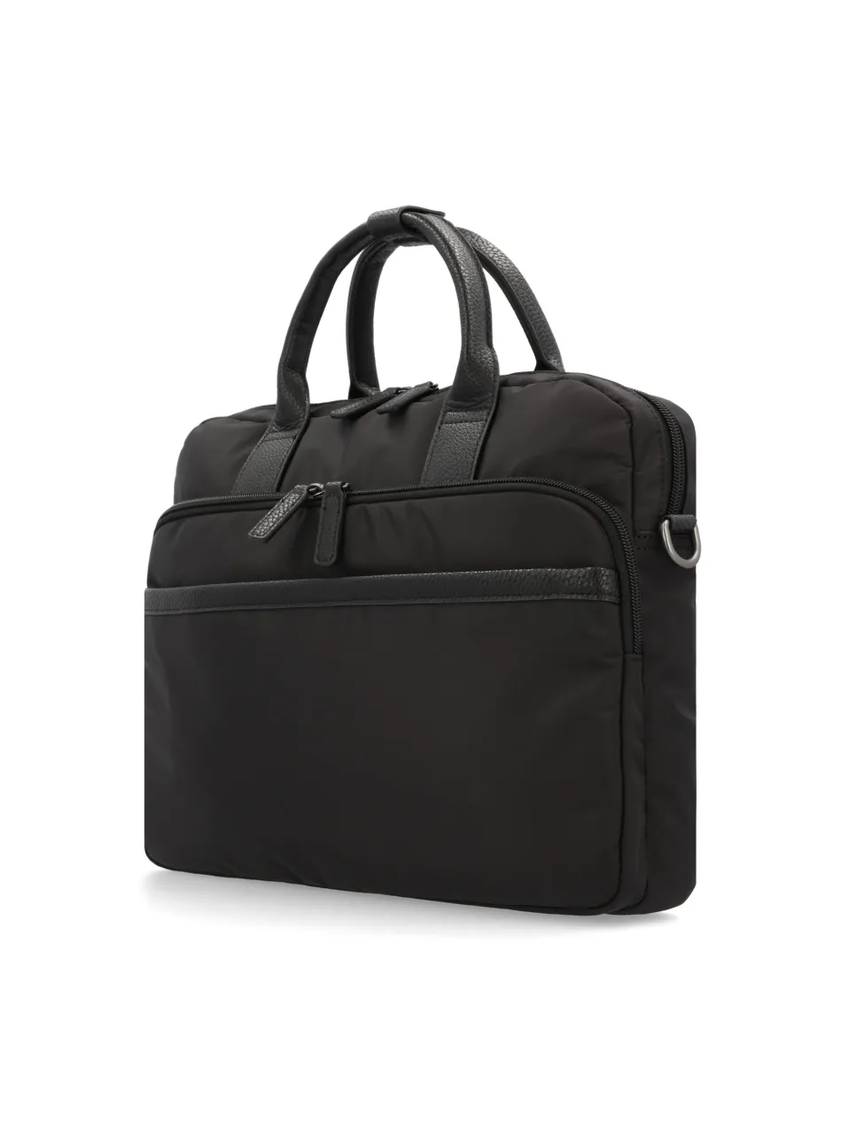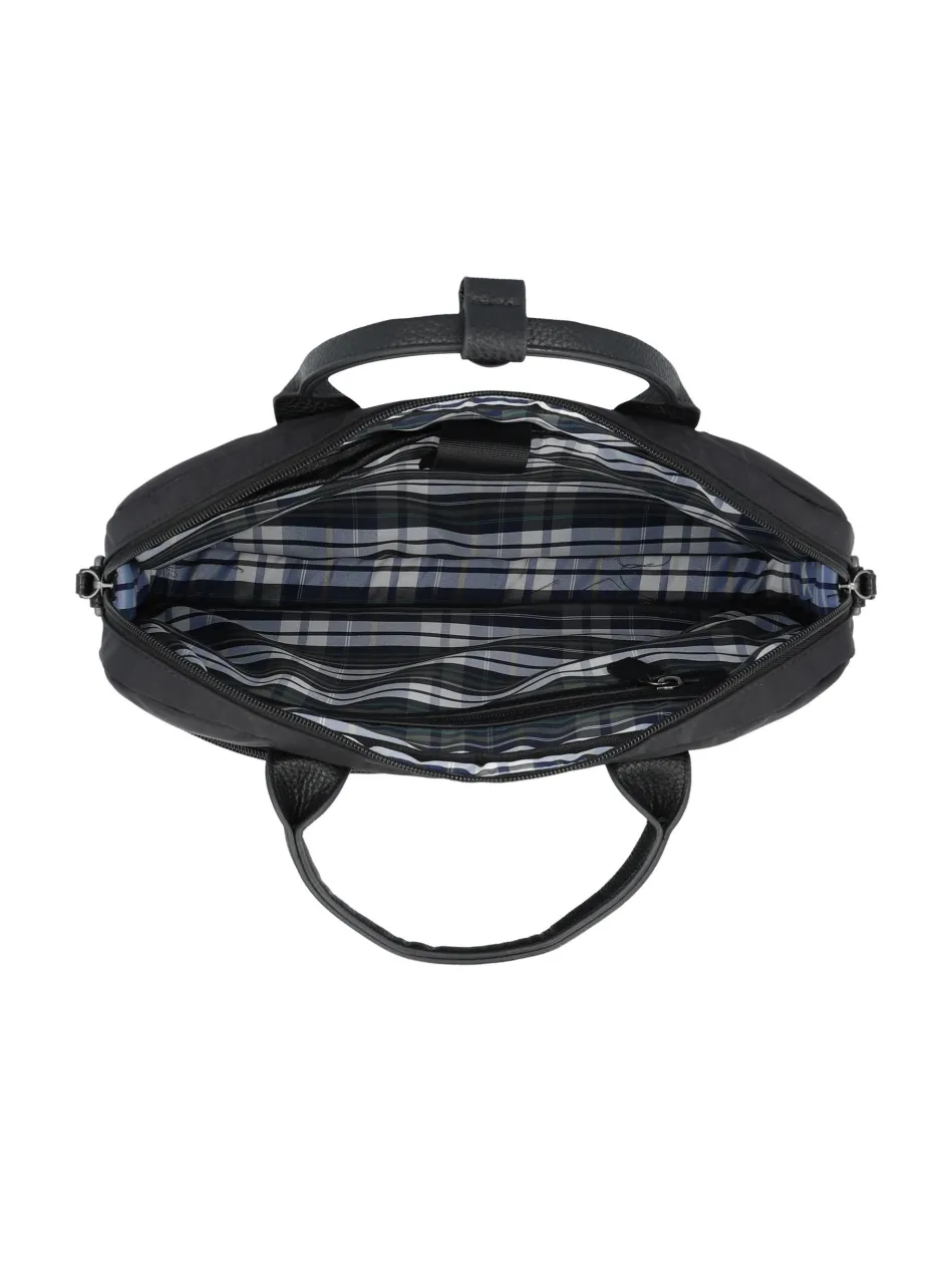 Praktische Funktionalität und edles Design verschmelzen in dieser Laptoptasche aus glattem, strapazierfähigem Nylon. Mit einem Reißverschluss kann das Hauptfach der Tasche sicher geschlossen werden, während zusätzlicher Stauraum durch die beiden extra Fächer vorne und hinten geboten wird. Das gepolsterte Laptopfach zusammen mit der praktischen Trolleyaufsatzschlaufe ermöglicht ein sicheres und bequemes Reisen. Kombiniert mit Stoffhose und Shirt oder Jeans und T-Shirt gibt diese Tasche jedem Office-Outfit einen lässigen Touch. Erfolgreich und stilvoll!