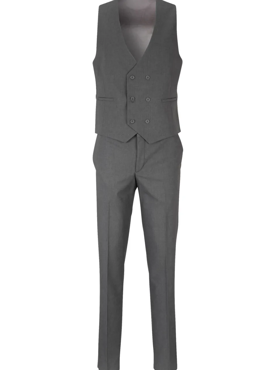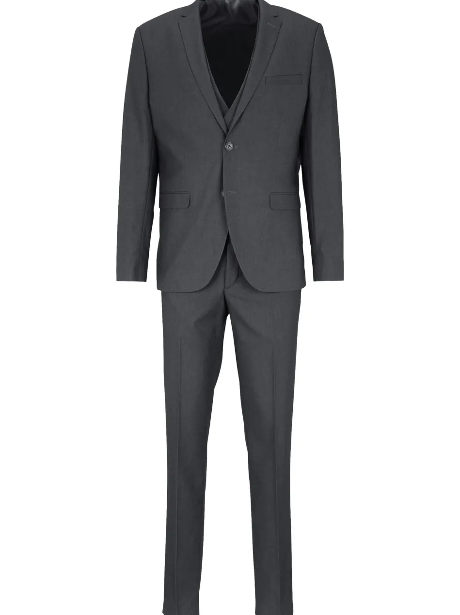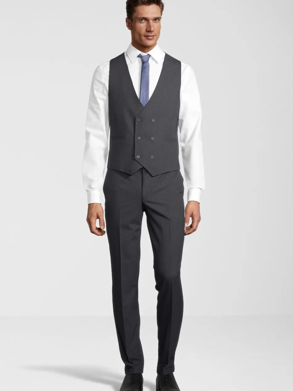 Wer Wert auf das gewisse Etwas legt, liegt mit dem 3-teiligen Anzug von Steffen Klein genau richtig! Die Kombination aus Slim Fit-Sakko, schmaler Hose und zweireihiger Weste setzt modische Akzente und trägt sich Dank dem elastischen Stoff sehr komfortabel. Bei der Weste ist der Rücken klassisch aus edel glänzendem Futterstoff gearbeitet, damit die Bequemlichkeit unter einem Jackett gewährt bleibt. Der perfekte Begleiter für besondere Anlässe!