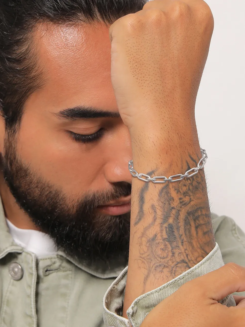 - Herrenarmband Silber, Ovale Gliederkette mit Karabinerverschluss