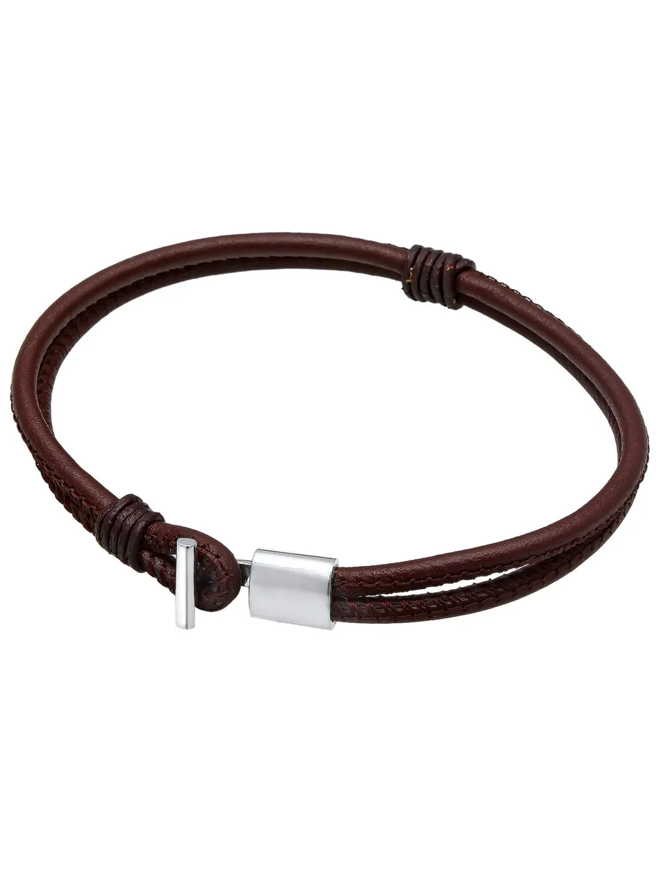- Elegantes Armband für Herren aus echtem Leder mit T-Bone Verschluss