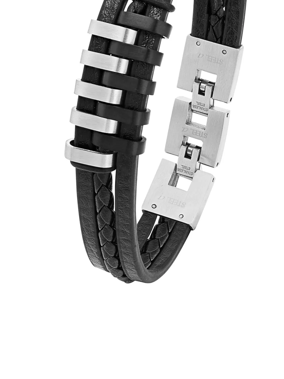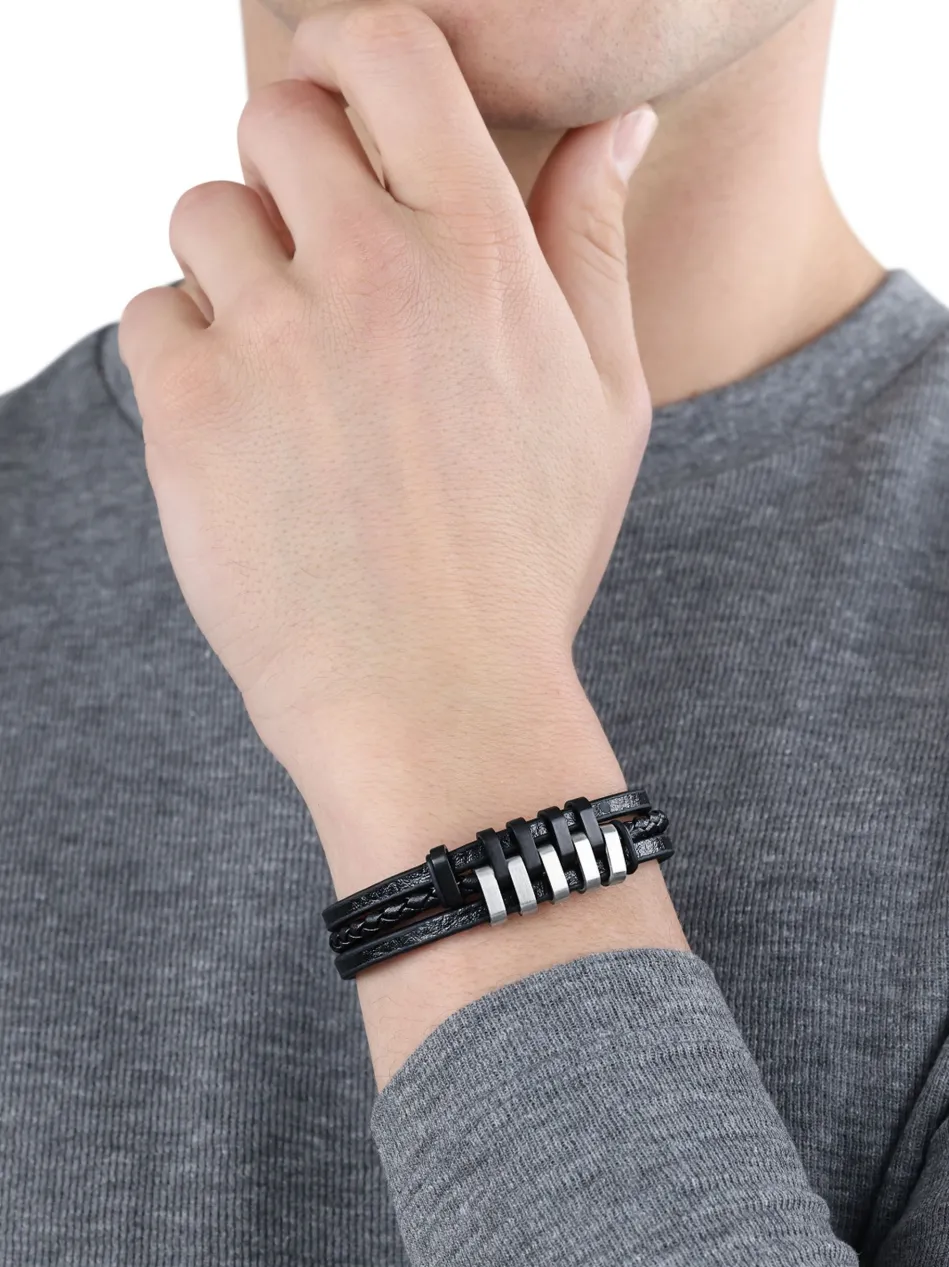- Herrenarmband aus Echtleder und Edelstahl-Details