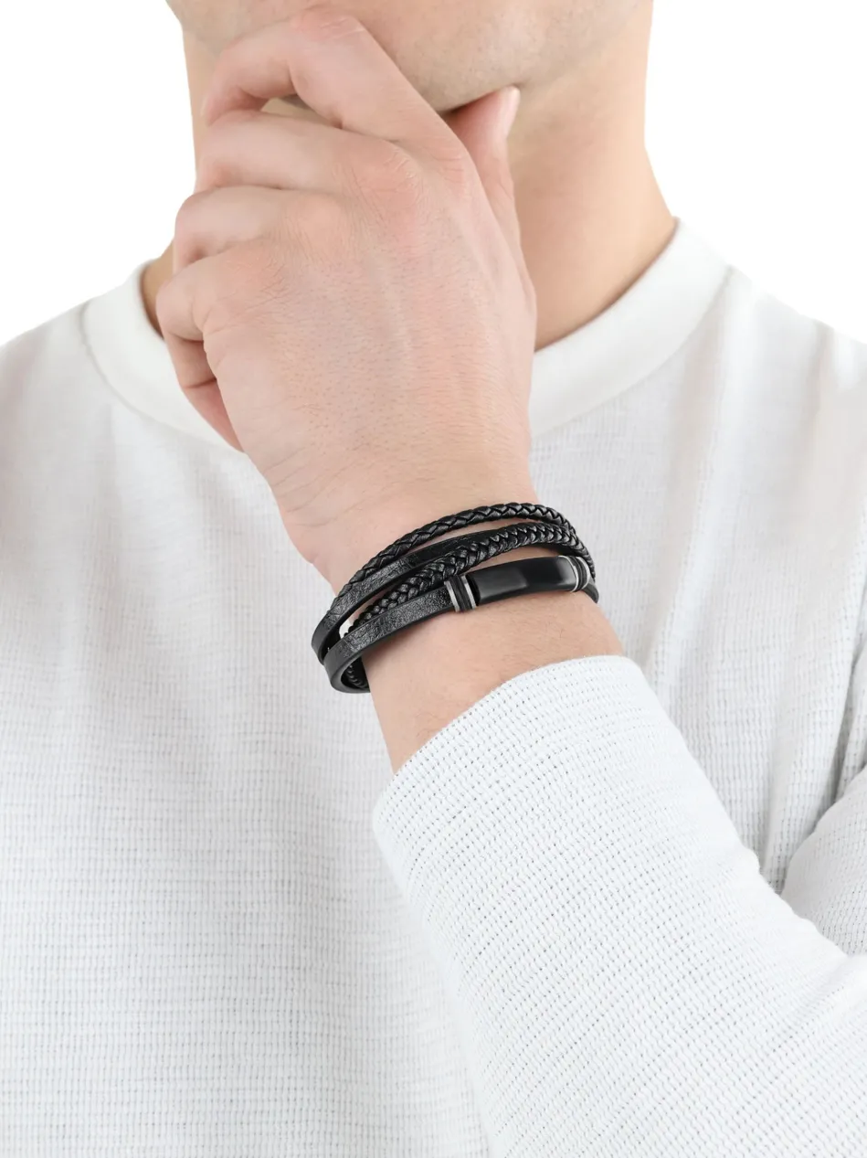 - Mehrreihiges Lederarmband mit Edelstahl-Details