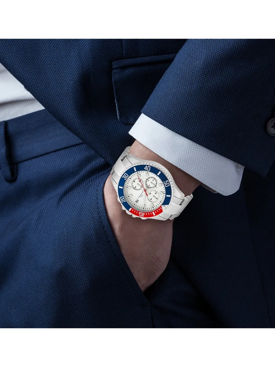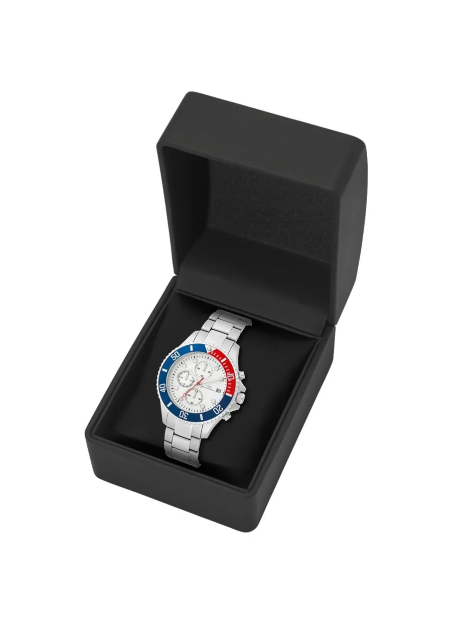 - Edelstahlgehäuse (44 mm) mit zweifarbiger Lünette