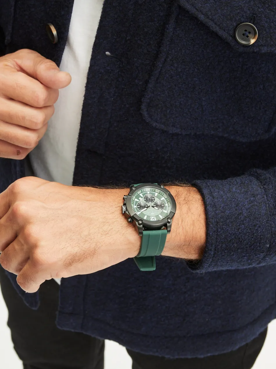 Edelstahlarmbanduhr mit Chronographenfunktion und Silikonband von Fynch-Hatton.