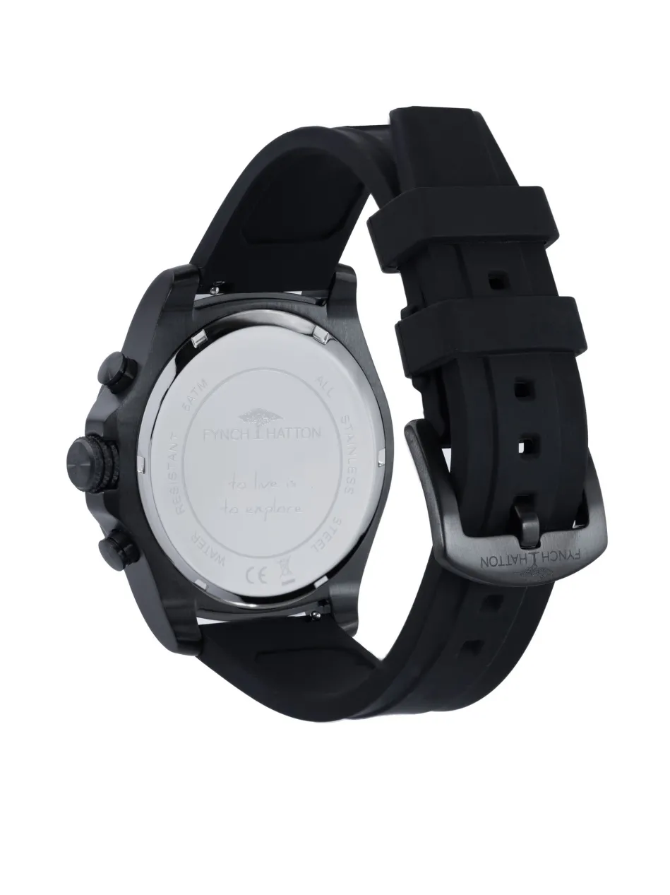 Edelstahlarmbanduhr mit Chronographenfunktion und Silikonband von Fynch-Hatton.
