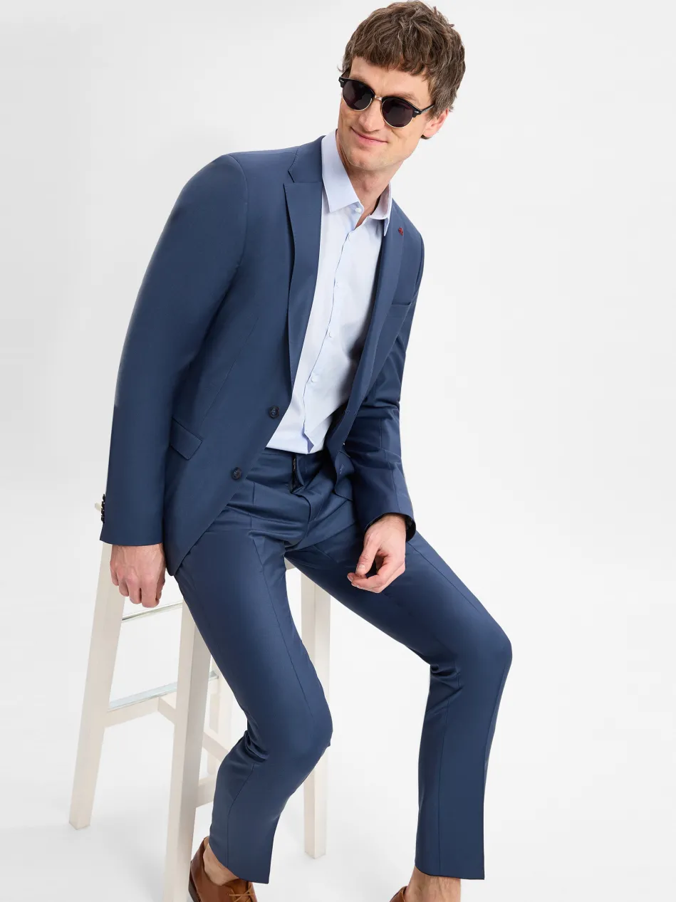 Die Baukasten-Hose von Roy Robson zeichnet sich durch eine exklusive Kombi aus moderner Slim Silhouette und stretchiger Schurwoll-Qualität aus. Die Hose ist Teil eines Baukasten-Anzugs, kann aber auch allein getragen werden.