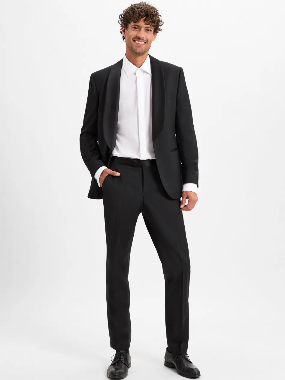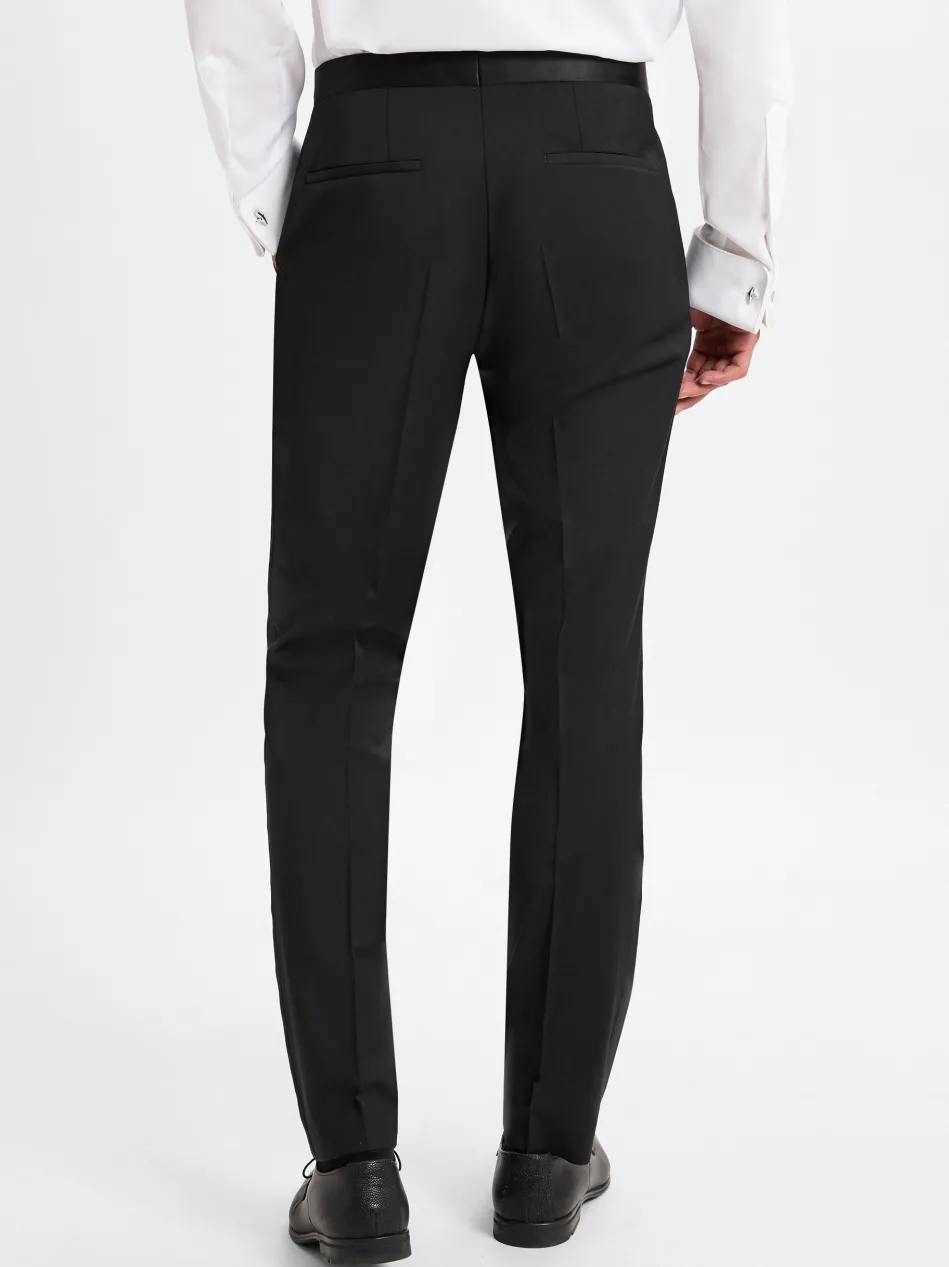 Die elegante Smoking-Hose H-Leon-Tux-MM-C-231 von BOSS bildet die richtige Basis für besondere Anlässe. Die Hose ist Teil eines Baukasten-Anzugs, kann aber auch allein getragen werden.