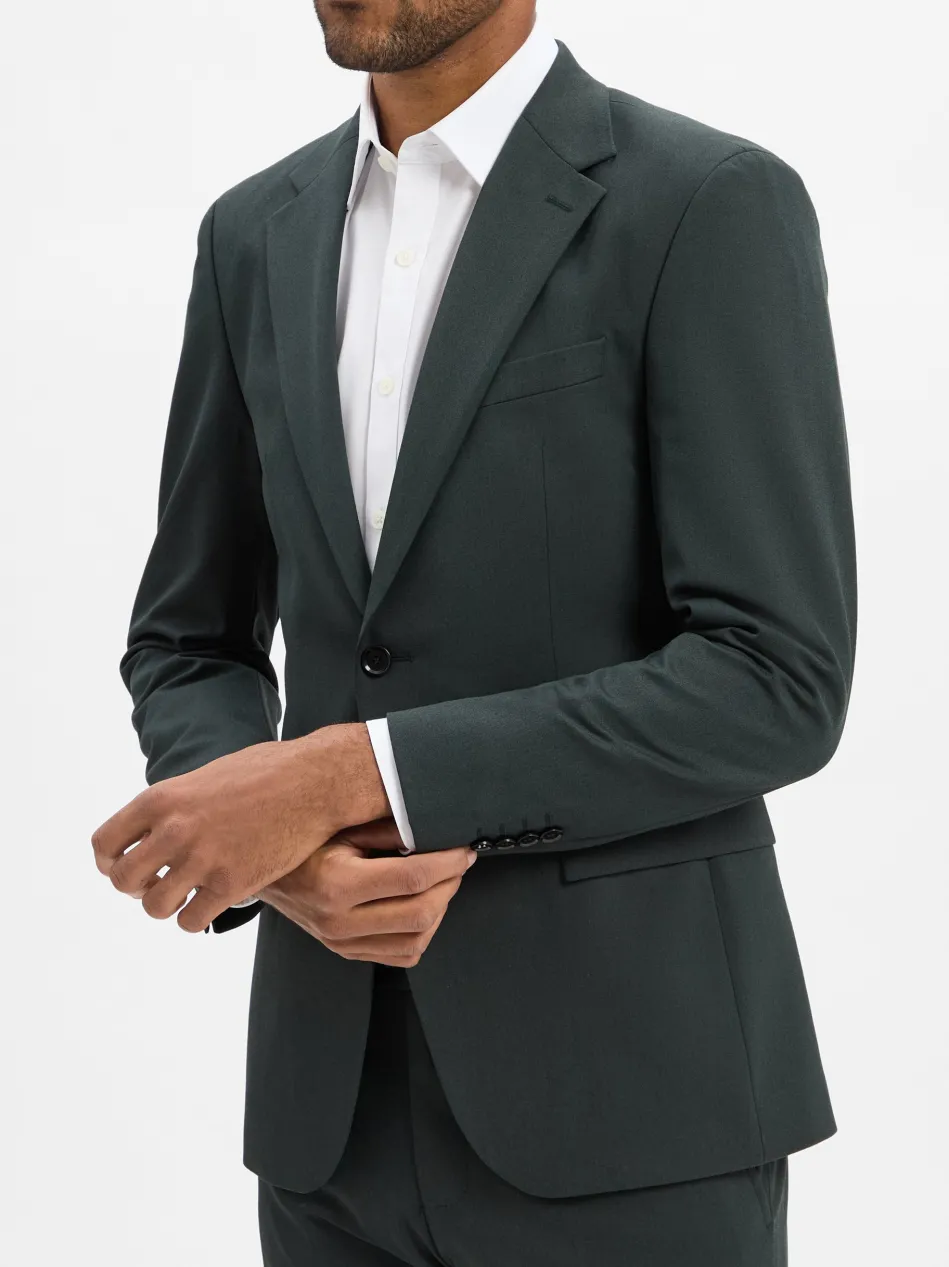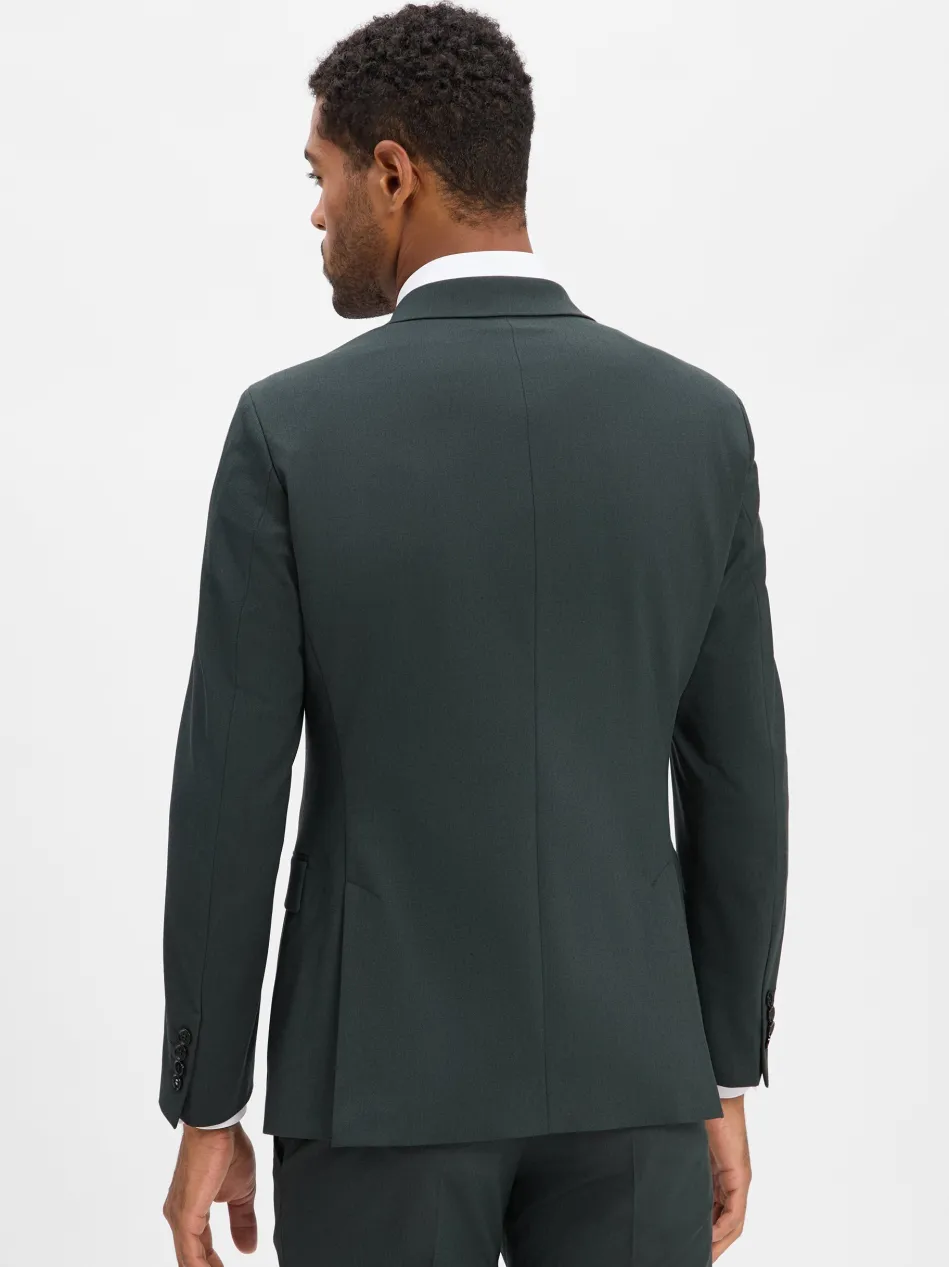 Schmal geschnitten und mit einer feinen Struktur mit Woll-Anteil gefertigt, überzeugt das Sakko Alzer3 als moderner Allrounder mit klassischem Appeal in der Businessgarderobe. Das Sakko ist Teil eines Baukasten-Anzugs, kann aber auch allein getragen werden.