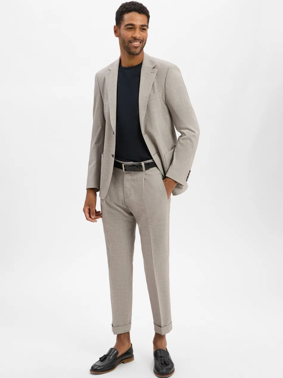 Moderner Business-Style: Das schmal geschnittene Sakko Arndt von Stellson verbindet die stretchige Qualität mit einem wirkungsvoll strukturierten Design. Das Sakko ist Teil eines Baukasten-Anzugs, kann aber auch allein getragen werden.