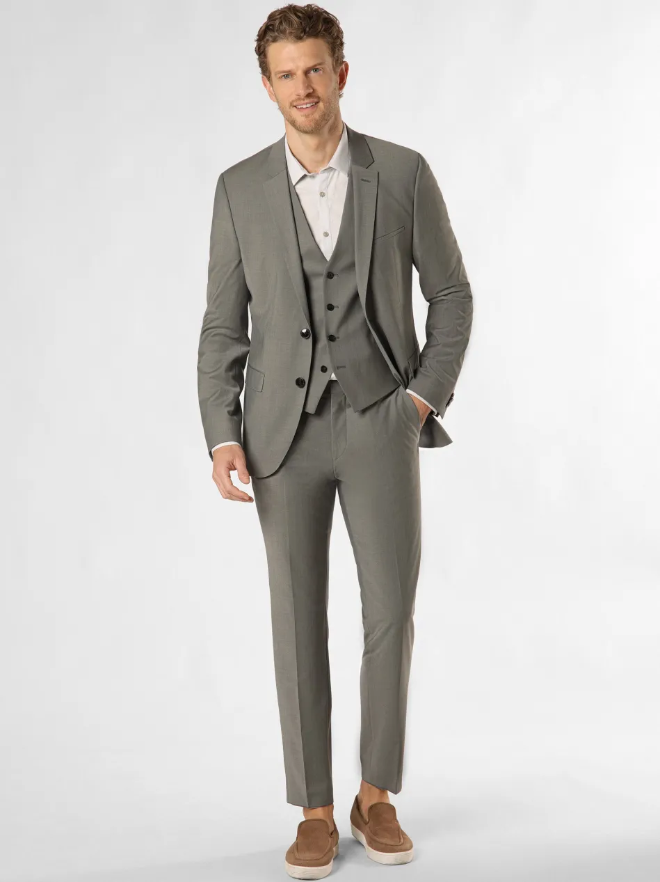 Die schmale Silhouette prägt das Sakko Arti232X von HUGO, während 4-Way-Stretch für Komfort sorgt. Das Sakko ist Teil eines Baukasten-Anzugs, kann aber auch allein getragen werden.