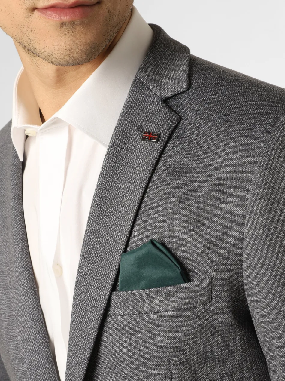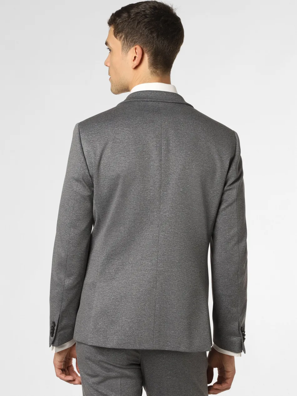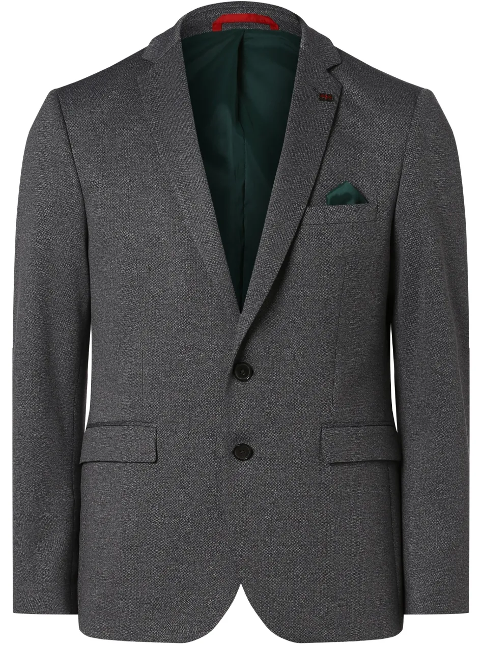Das Slim Fit Sakko Brixdon von Finshley & Harding London setzt mit der melierten Jersey-Qualität gleichermaßen auf Komfort und Stil. Das Sakko ist Teil eines Baukasten-Anzugs, kann aber auch allein getragen werden.