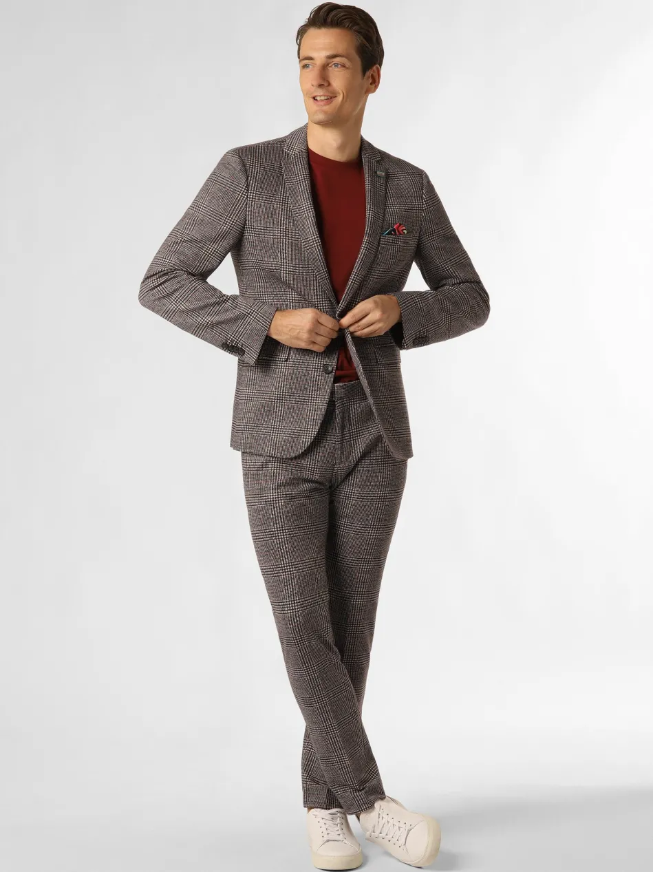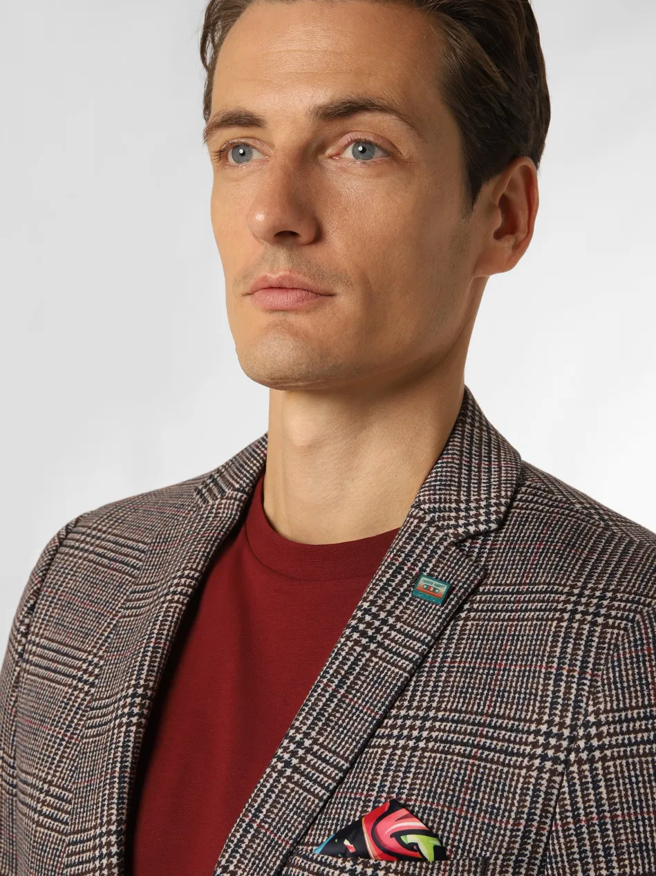 Mit Karo-Print, coolem Kassetten-Pin und bunt gemustertem Einstecktuch avanciert das Sakko Brixdon von Finshley & Harding zum ultimativen Eyecatcher. Das Sakko ist Teil eines Baukasten-Anzugs, kann aber auch allein getragen werden.
