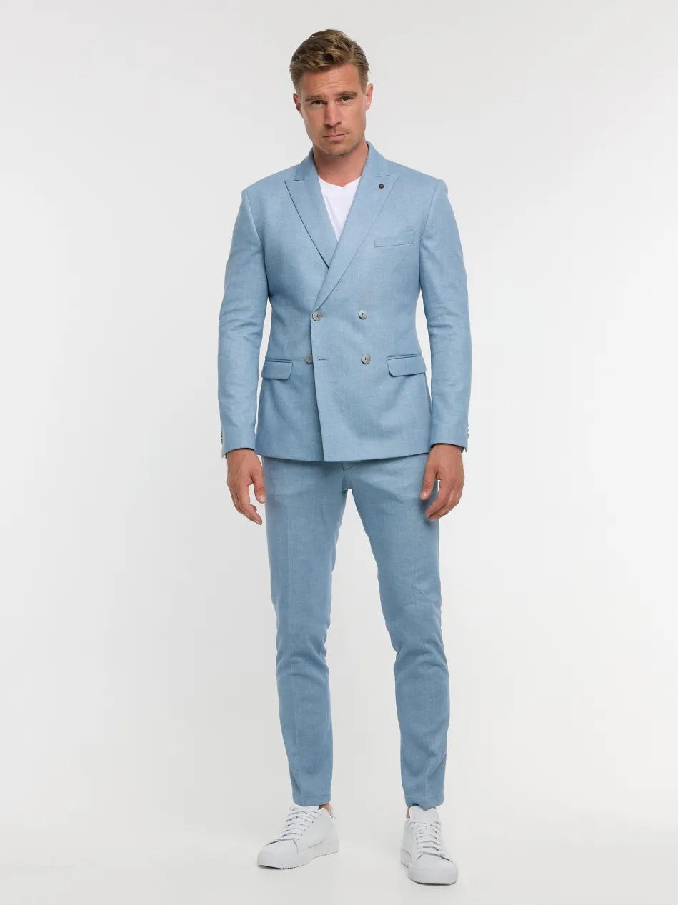 Das bequeme doppelreihige Jersey Sakko DiHugo ist slim geschnitten . Das Sakko ist mit zwei aufgesetzten Taschen ausgestattet, einer Brusttasche und zwei Innentaschen. Durch das Teil-Futter ist das Sakko sehr leicht und angenehm zu tragen. Das Futter der Brusttasche lässt sich herausziehen und ersetzt das Einstecktuch.