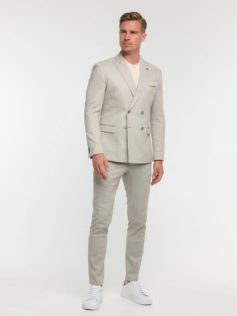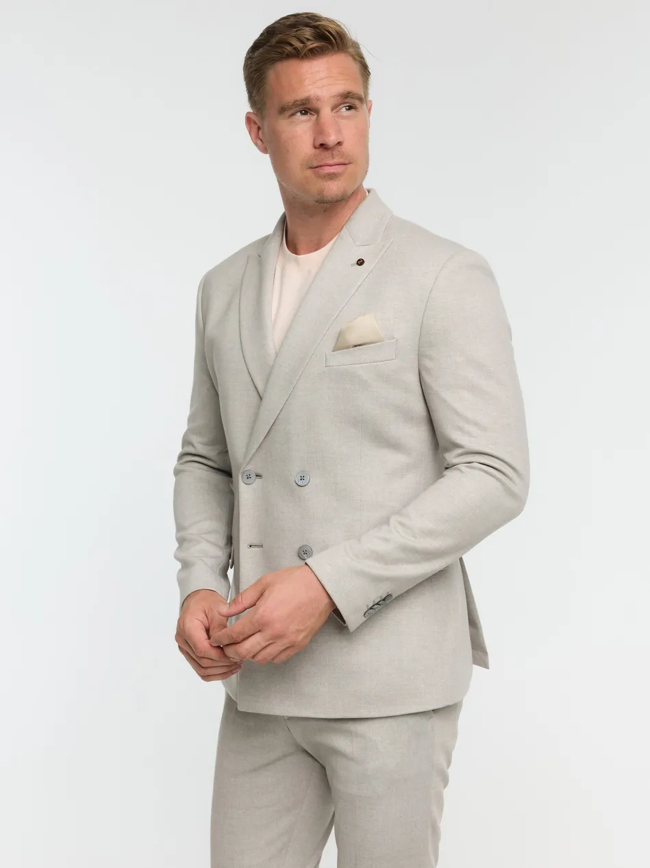 Das bequeme doppelreihige Jersey Sakko DiHugo ist slim geschnitten . Das Sakko ist mit zwei aufgesetzten Taschen ausgestattet, einer Brusttasche und zwei Innentaschen. Durch das Teil-Futter ist das Sakko sehr leicht und angenehm zu tragen. Das Futter der Brusttasche lässt sich herausziehen und ersetzt das Einstecktuch.