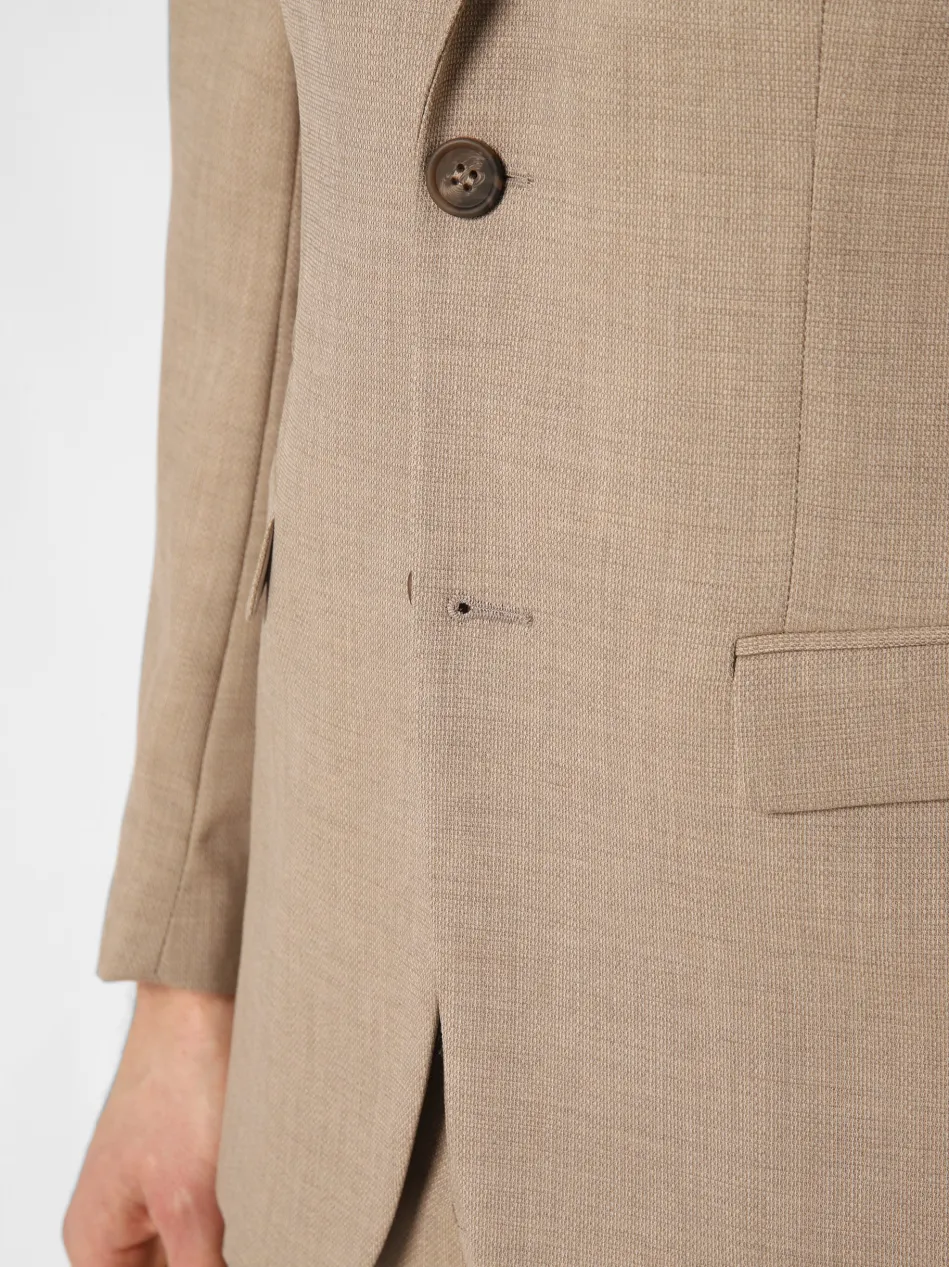 Das Baukasten-Sakko Neil von Selected sorgt dank der leichten Textur und dem schmalen Schnitt für einen smarten Anlass-Look. Das Sakko ist Teil eines Baukasten-Anzugs, kann aber auch allein getragen werden.