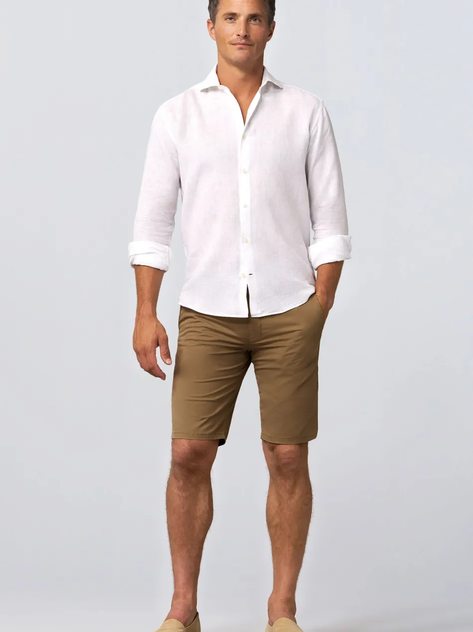 Diese Bermuda, Modell B-Palma, ist perfekt geeignet für den Sommer. Der leichte Bio-Baumwolltwill sorgt für ein angenehmes Tragegefühl an warmen Tagen. Praktische Details, wie die versteckte Reißverschluss-Sicherheitstasche im linken, und die zusätzliche Münztasche im rechten Taschenbeutel, machen diese Bermudashorts zum perfekten Begleiter für warme Urlaubstage. Made in EU.