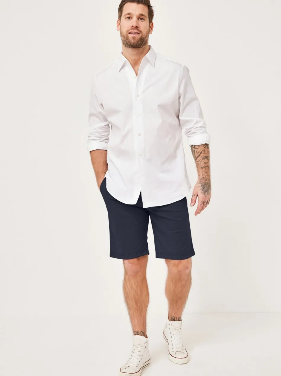 Eine moderne Passform kombiniert mit einer tadellosen Verarbeitung liefern die elastischen Bermuda Shorts Surrey aus erstklassigem Baumwollmischgewebe. Der weiche und strukturierte Stoff ist atmungsaktiv und sorgt für einen angenehmen Tragekomfort. Wenn die Temperaturen sommerlich werden, sind diese Shorts ein echtes Must-Have.