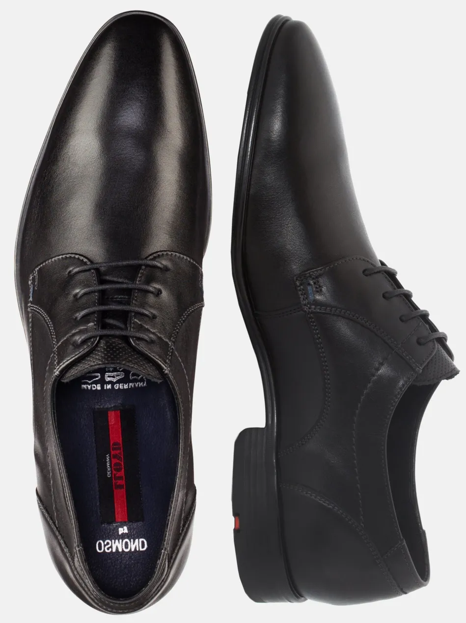 Eleganter, zeitloser Schnürschuh aus hochwertigem, anschmiegsamen Glattleder. Das junge Design wird durch feine Details wie blaue Senknadeln und Handriegel unterstrichen. Mit flexibler und modische enganliegender Gummisohle ist dieser Klassiker ein idealer Businessbegleiter.