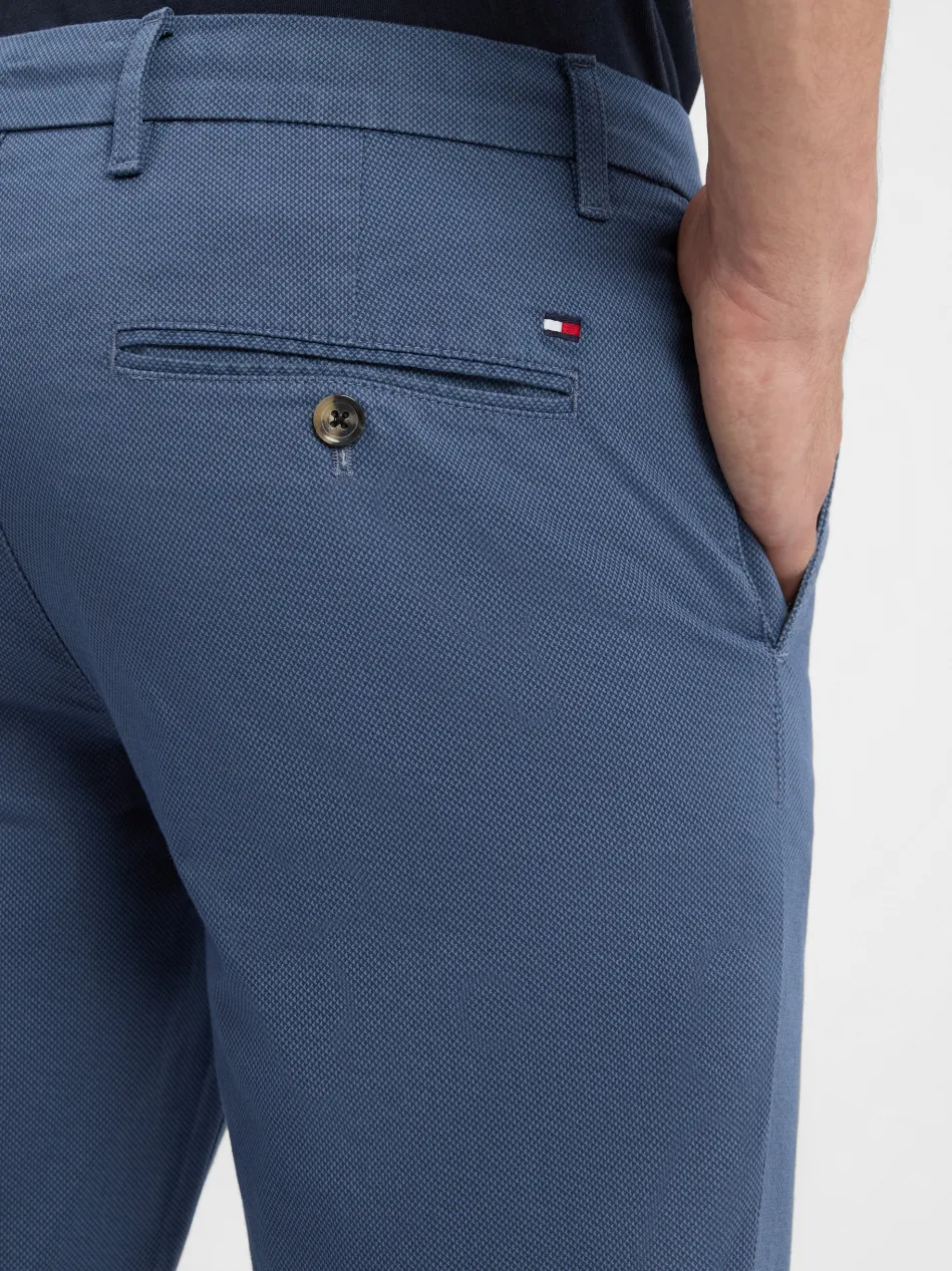 Die Tommy Hilfiger Chino Bleecker Slim Fit besticht durch ihre schmale Silhouette und ein feines Ton-in-Ton-Muster für einen eleganten, modernen Auftritt.