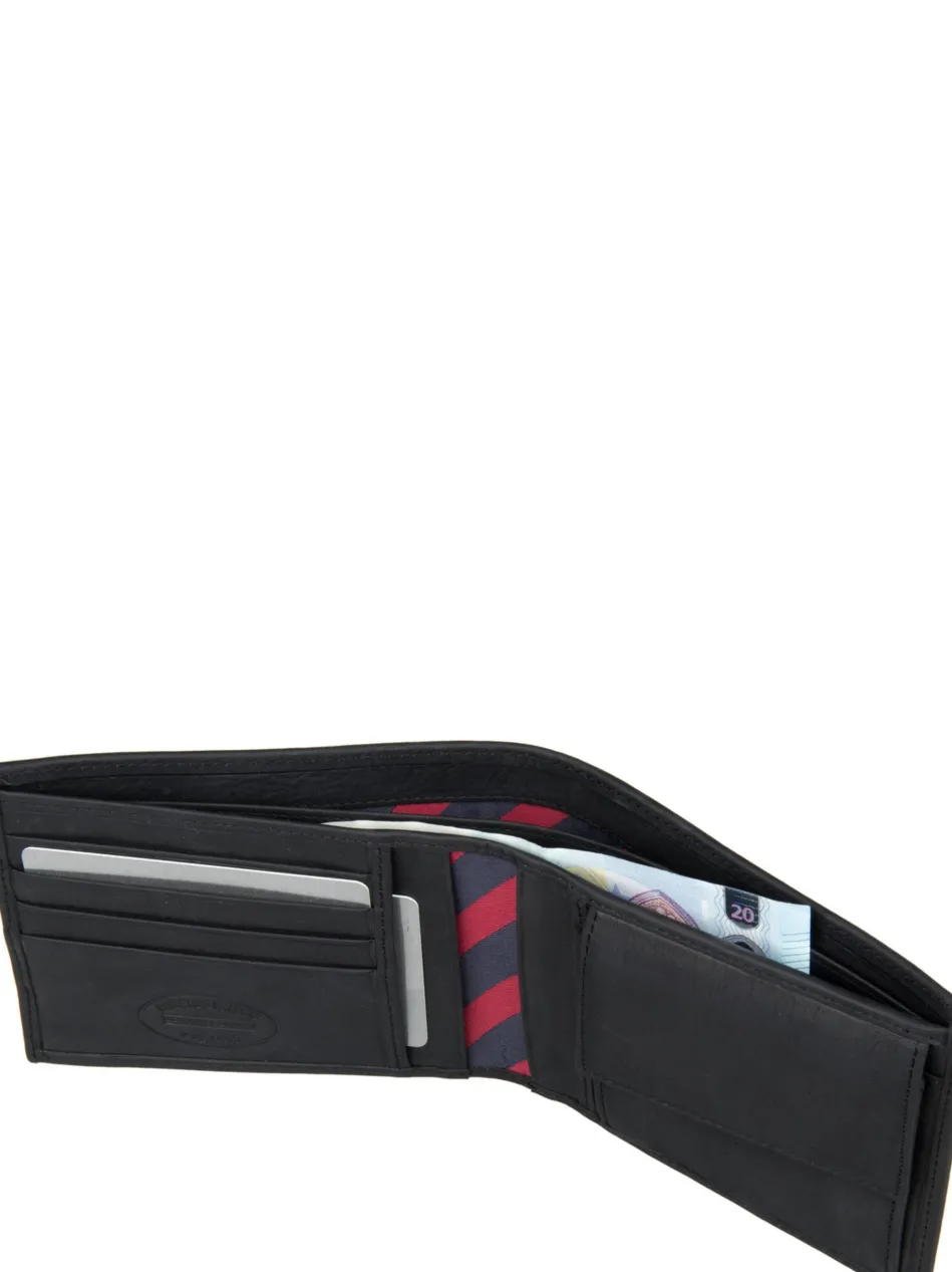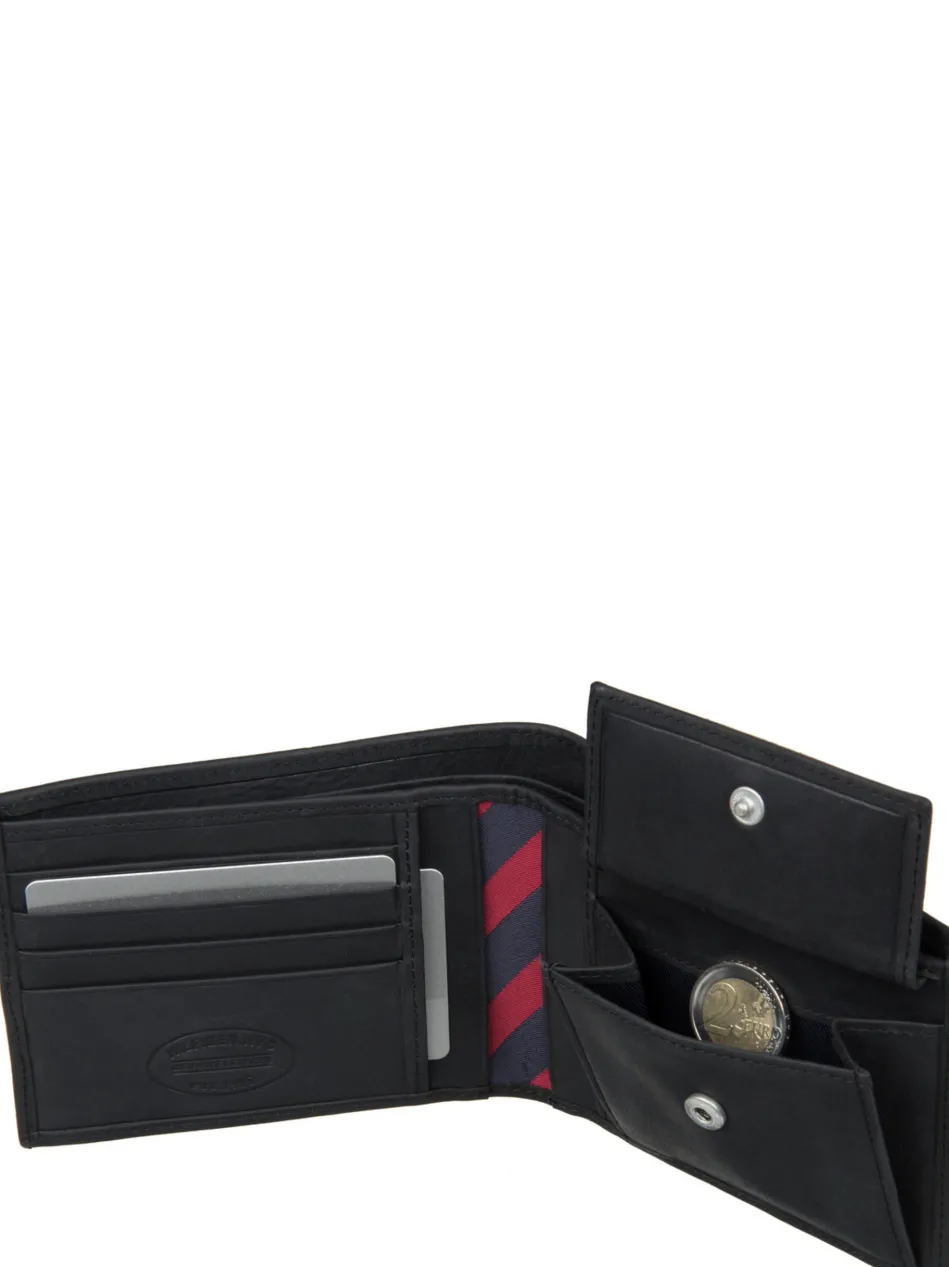 Für Männer, die es gern rauer mögen! Geldbörse von Tommy Hilfiger aus leicht angerautem Leder, mit 2 Scheinfächern und einem Münzfach mit Druckknopf.