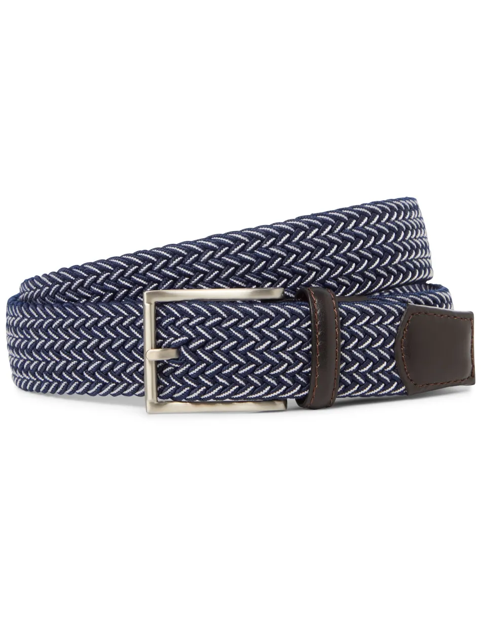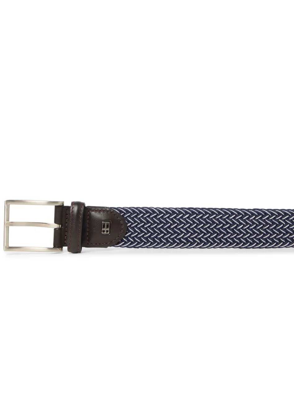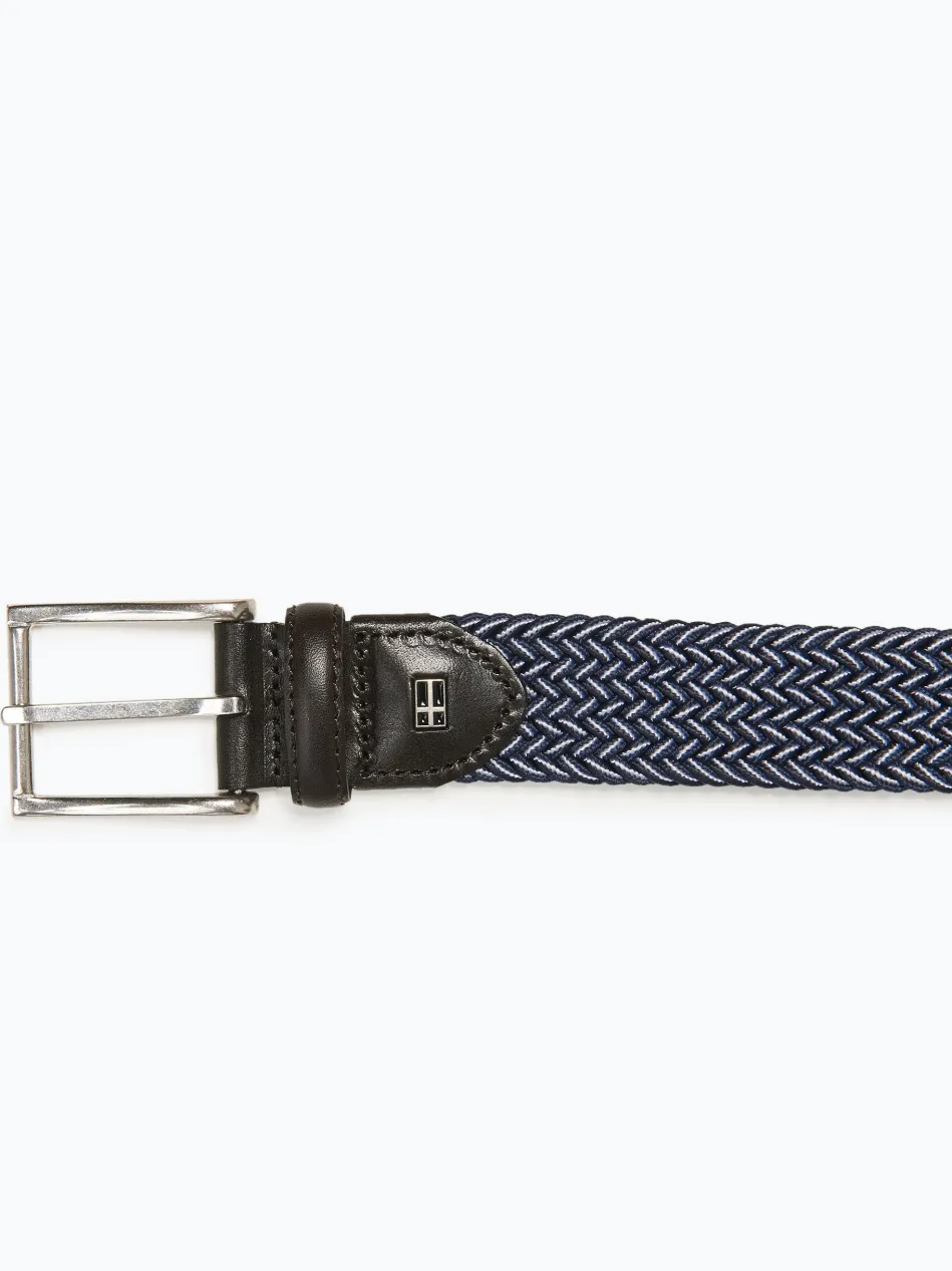 Aus einem elastisch geflochtenen Material-Mix ist dieser bequeme Gürtel von Nils Sundström gefertigt und überzeugt als auffälliges Accessoire.