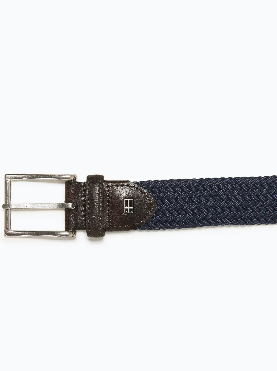 Aus einem elastisch geflochtenen Material-Mix ist dieser bequeme Gürtel von Nils Sundström gefertigt und überzeugt als auffälliges Accessoire.