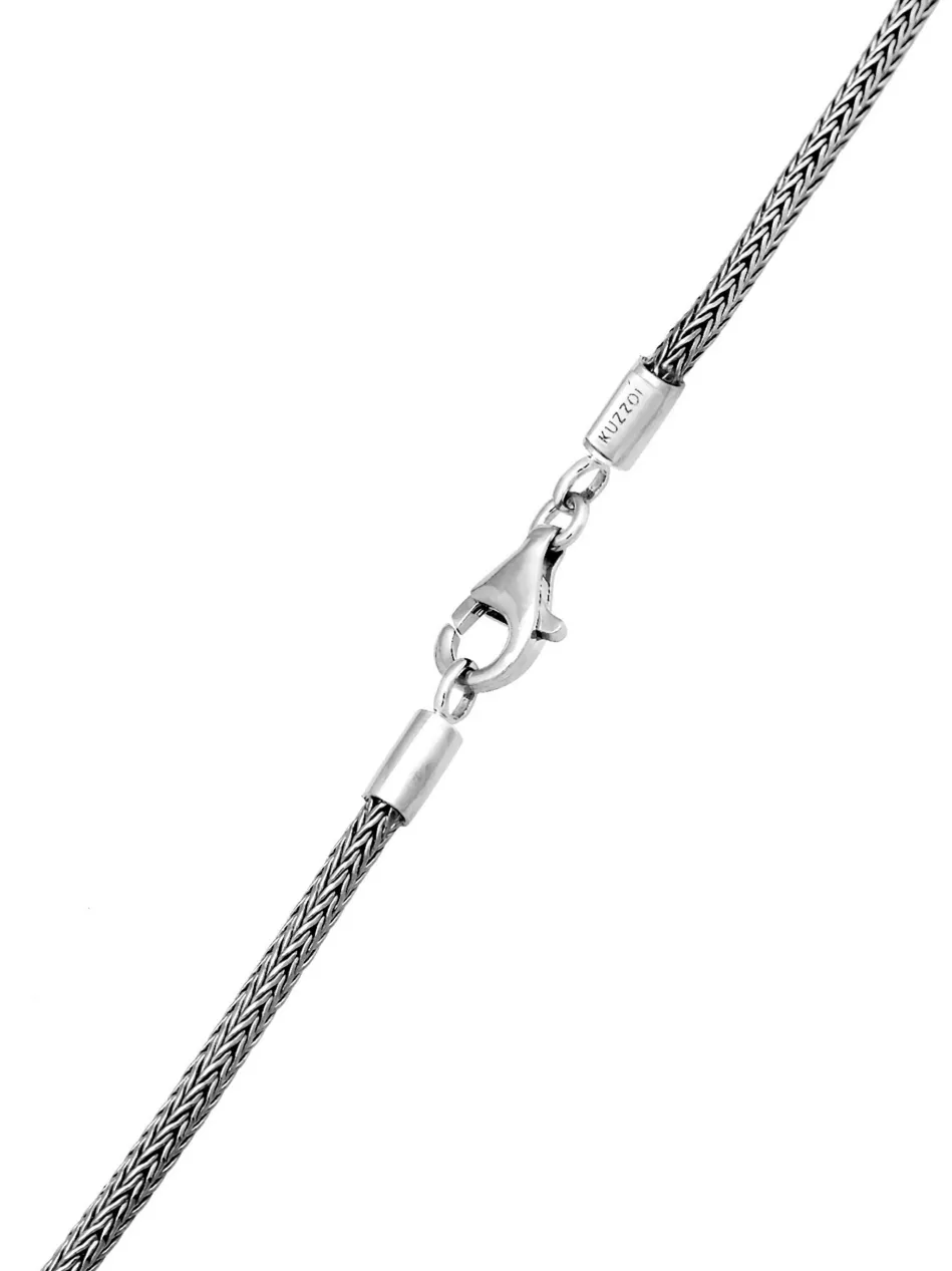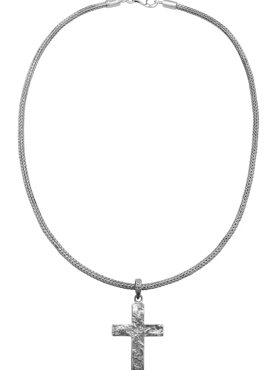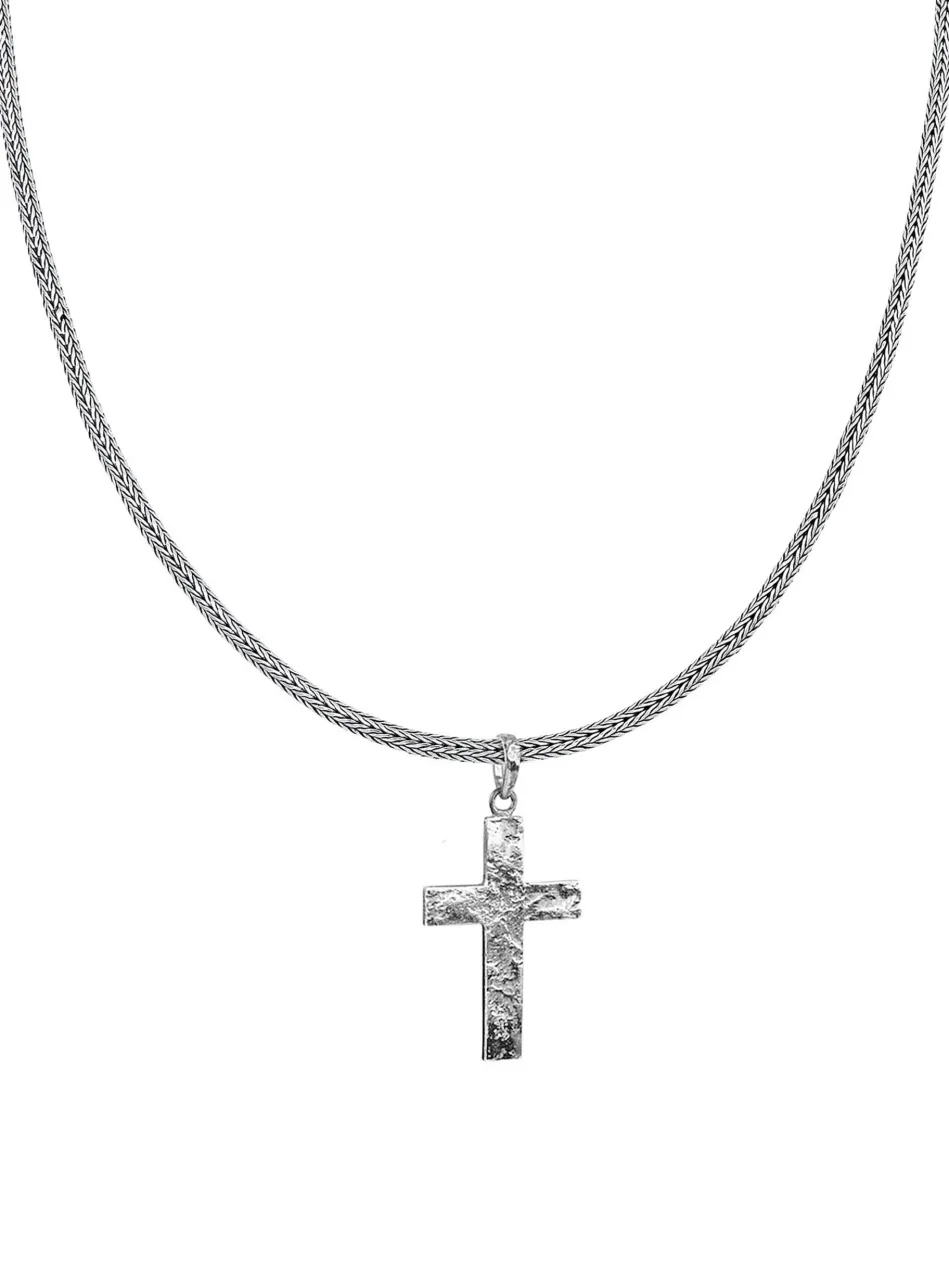 Die robuste und stilvolle Zopfkette, wurde von Hand gefertigt und sorgt für einen maskulinen Look, der zu jedem Outfit passt. Die oxidierte Silberkette ist mit einem gehämmerten Kreuzanhänger geschmückt – ein unverzichtbarer Bestandteil der Garderobe für alle modebewussten Männer. Ziehe die Blicke auf dich mit dieser einzigartigen Herrenkette.Dieses exklusive Schmuckstück wird in einem eleganten Geschenk-Etui geliefert.