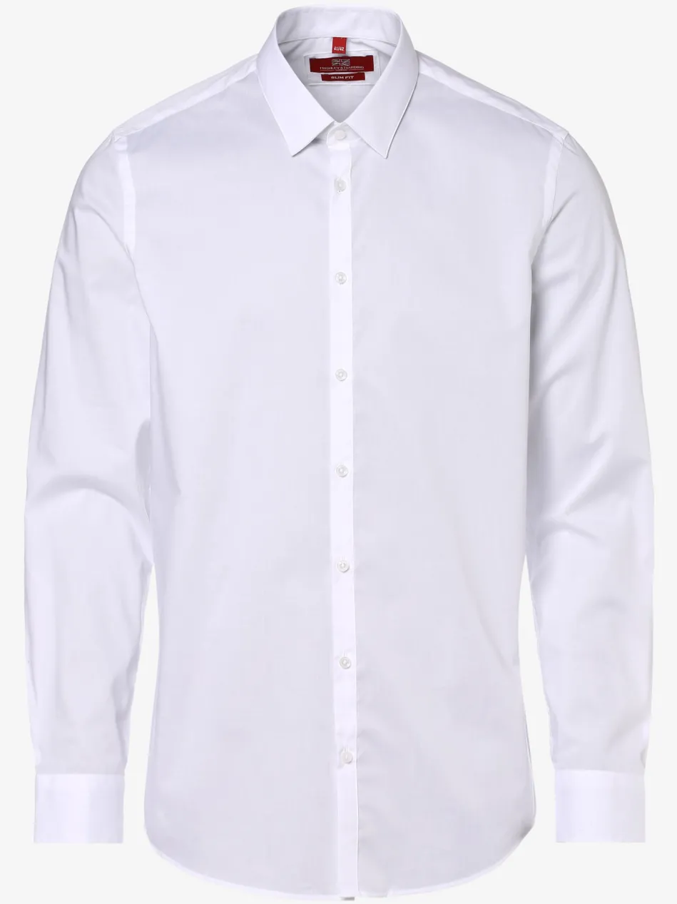 Das zeitlose Design mit Kentkragen und knöpfbaren Sportmanschetten macht das Hemd Dexter von Finshley & Harding London zum klassischen Office-Allrounder.