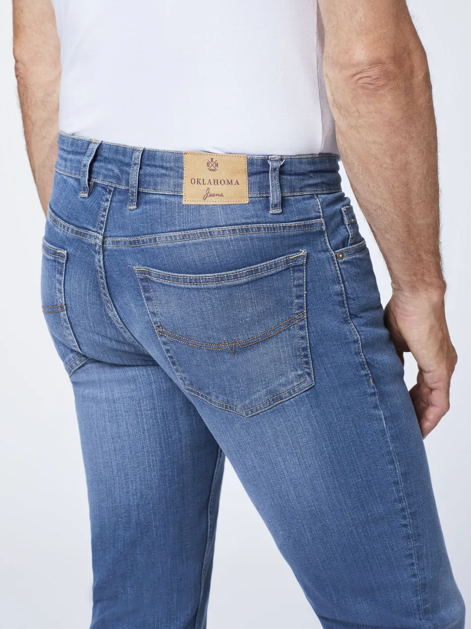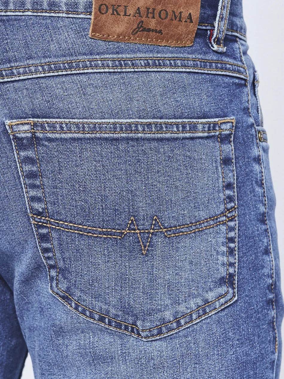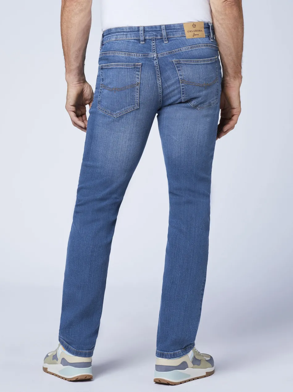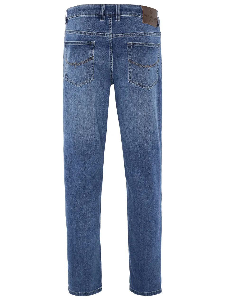 Stylishe Denims wie diese Jeans von OKLAHOMA JEANS sind aus der Freizeit-Garderobe von modebewussten Herren kaum wegzudenken. Der Allrounder präsentiert sich dezent verwaschen und mit genau der richtigen Portion Details. Farblich abgesetzte Steppungen und Nieten sorgen für wohldosierte Akzente. Zudem setzt OKLAHOMA JEANS bei den Jeans auf Stretch-Komfort.