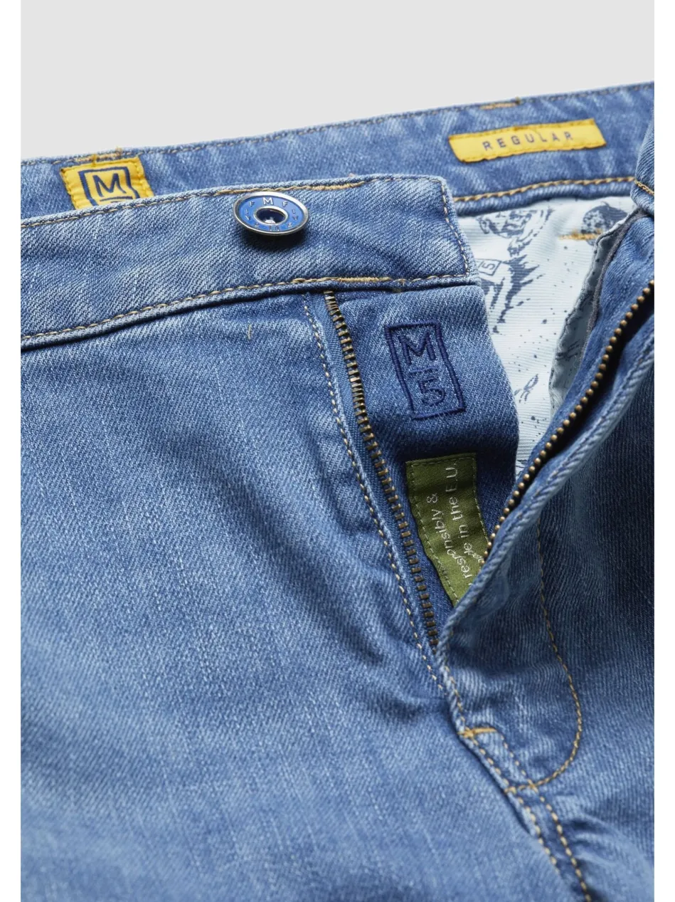 REGULAR – die Entspannte. Wie alle Hosen aus der M5 by MEYER Linie ist die REGULAR ideal konstruiert. Die legere Five Pocket hat neben den bekannten fünf Taschen insgesamt sieben Gürtelschlaufen. Sie ist aus hoch elastischem Super-Stretch, der nicht nur höchsten Tragekomfort bietet, sondern auch optimal die Form bewahrt. Ebenfalls so bequem wie angenehm sitzend ist der Rundbund. Alle Effekte und Waschungen sind natürlich entstanden und von Hand aufgebracht.