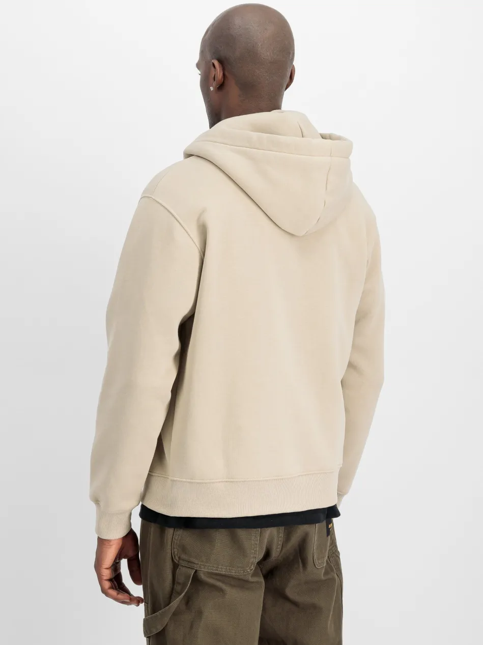 Der Basic Zip Hoodie SL von Alpha Industries ist ein Regular-Fit Alltagsbegleiter, der Komfort bietet. Das Baumwoll-Polyester-Material sorgt für angenehmes Tragen bei Sport und Freizeit. Optisch überzeugt der Hoodie durch den Alpha Logo Plastisol Druck auf der Brust und das Loop Label am Saum. Innen bietet gebürstetes Fleece Wärme und Weichheit. Rib-Bündchen und eine Kapuze mit Kordelzug vervollständigen den Look, ideal als stylisches Key-Piece oder gemütlicher Begleiter.