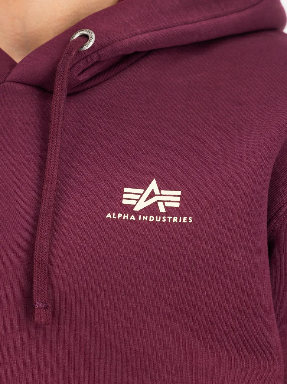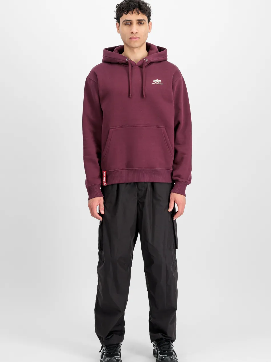 Der Basic Hoodie Small Logo von Alpha Industries bietet Style und Komfort in Regular Fit. Aus Baumwolle und Polyester gefertigt, sorgt das Brushed Fleece Innenfutter für Wärme. Ein dezentes Plastisol-Logo auf der Brust setzt moderne Akzente. Rib-Bündchen, Kordelzug an der Kapuze und eine Kängurutasche runden das Design ab. Das RBF Loop Label am Saum sowie die Grammatur von 330 g/m² gewährleisten Langlebigkeit.
