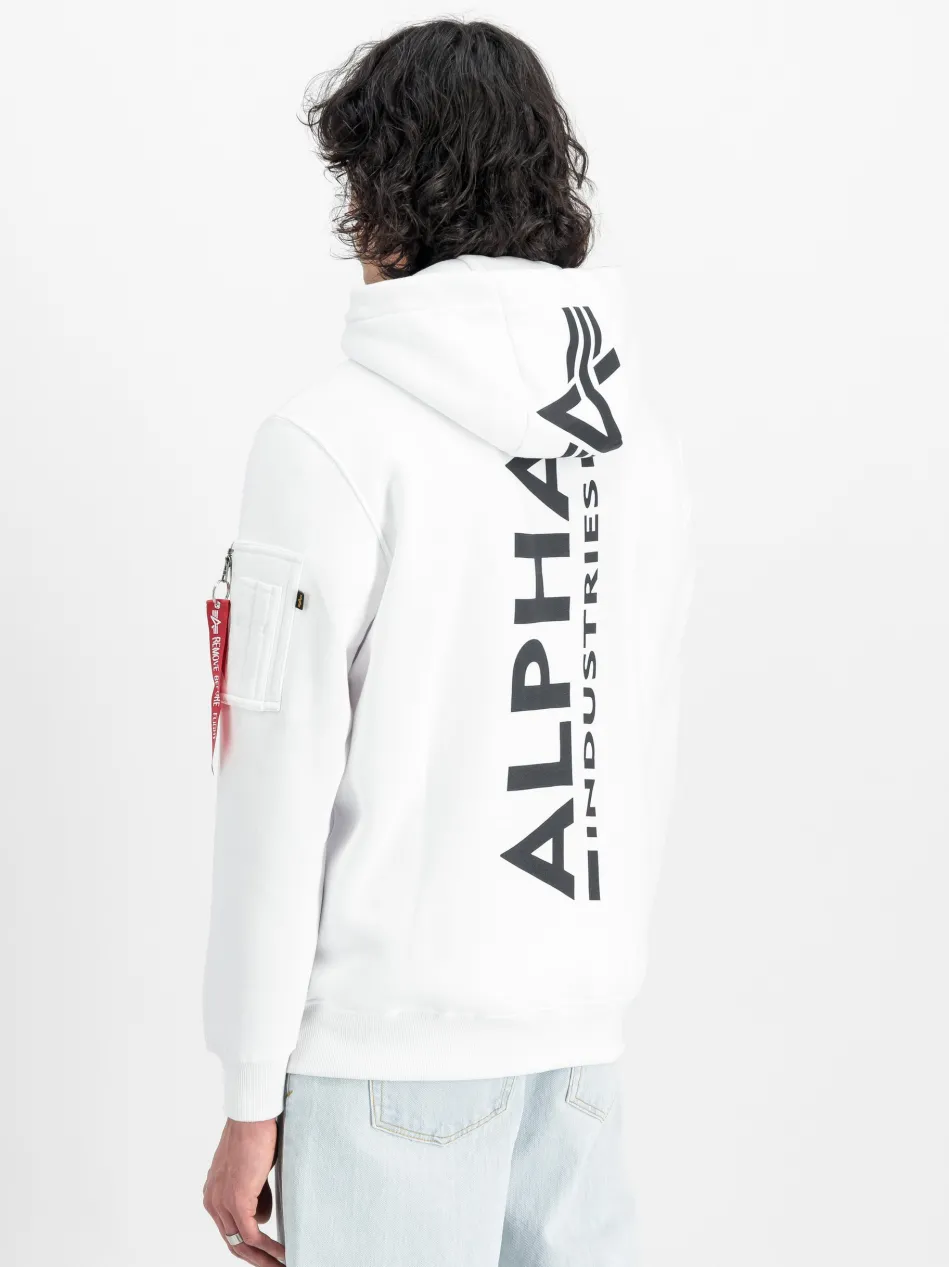 Der Kapuzenpullover mit Rückendruck von Alpha Industries verfügt über eine Kängurutasche, einen Brustaufnäher, ein RBF-Tag und einen Alpha-Rückendruck. Dieser stylische Hoodie ist perfekt für Männer, die ein Statement setzen wollen.
