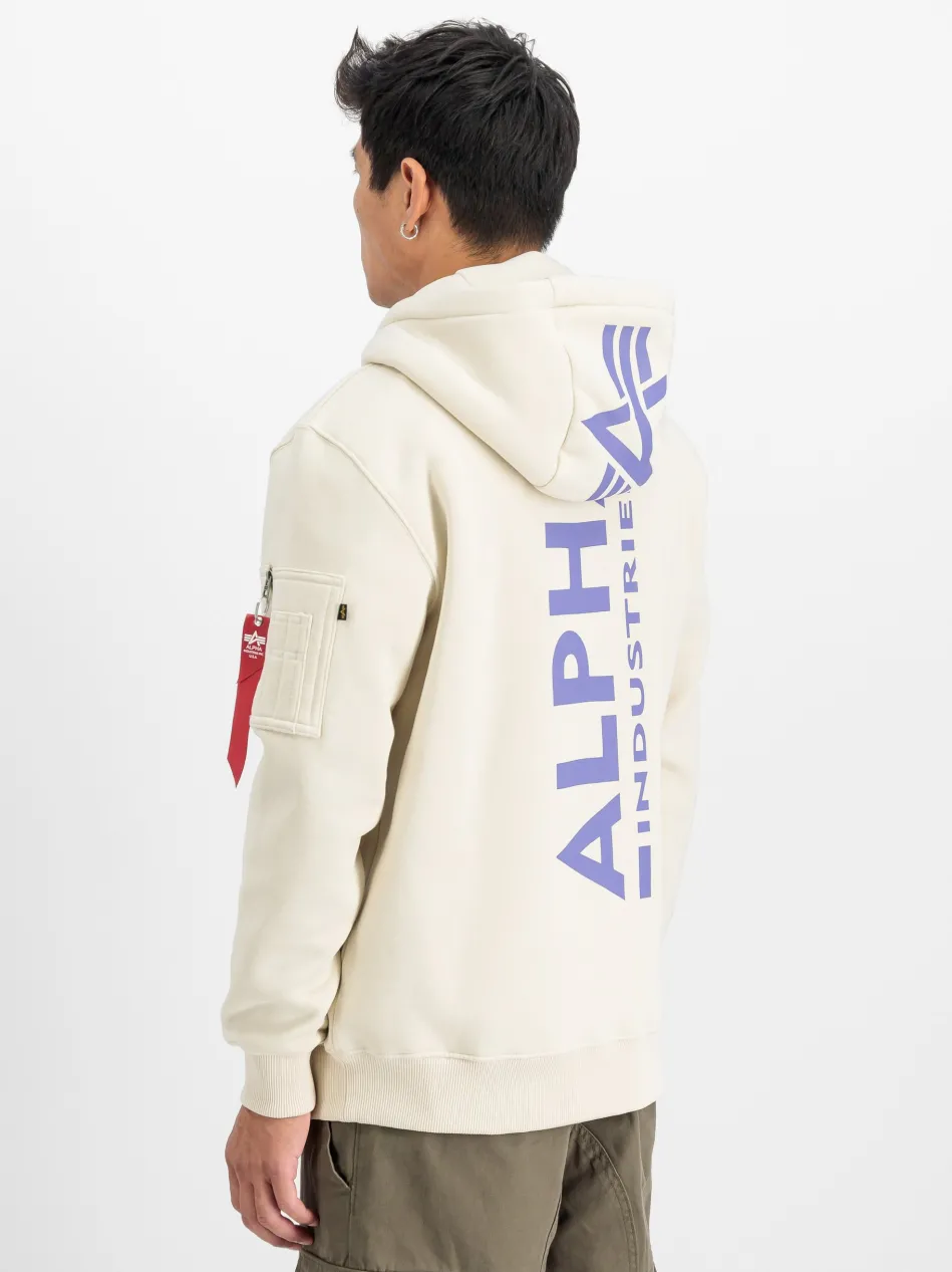 Der Kapuzenpullover mit Rückendruck von Alpha Industries verfügt über eine Kängurutasche, einen Brustaufnäher, ein RBF-Tag und einen Alpha-Rückendruck. Dieser stylische Hoodie ist perfekt für Männer, die ein Statement setzen wollen.