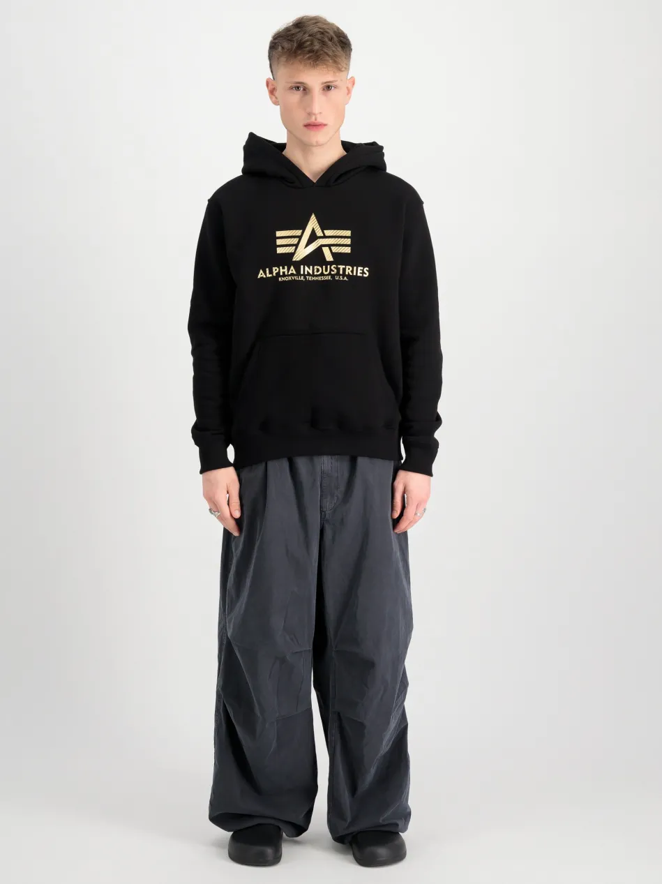 Der Basic Hoodie Carbon von Alpha Industries ist ein klassischer Herren-Hoodie im Regular Fit aus einer Baumwoll-Polyester-Mischung. Das schlichte Design mit Carbon Flex Druck verleiht einen modernen Look. Ein gebürstetes Fleece-Innenfutter bietet Wärme und Komfort, während Rib Bündchen vor Kälte schützen. Die Kapuze schützt vor Wetter, die Kängurutasche wärmt die Hände. Mit einem Gewicht von 330 g/m² ist der Hoodie robust und ideal für Freizeit, Sport oder Entspannung geeignet.