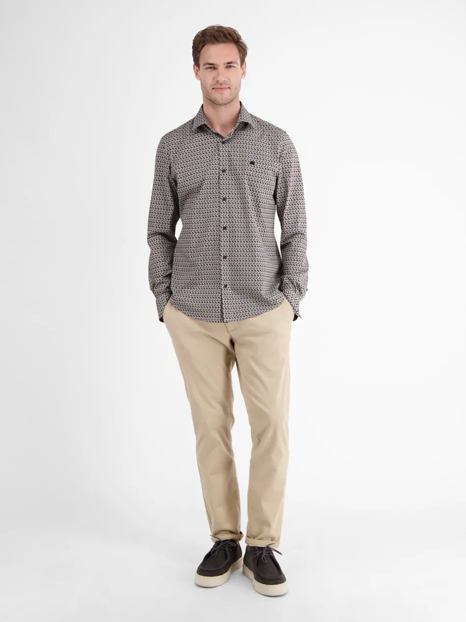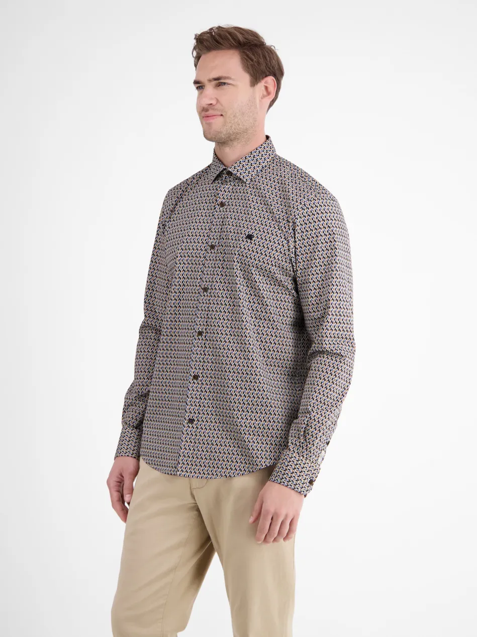 Das LERROS Herrenhemd mit sportivem Haifischkragen besticht durch sein geometrisch designtes Minimalmuster und die normale Schnittführung . Die Zwei-Knopf-Manschetten und die elastische Baumwollqualität verleihen dem Langarmhemd nicht nur eine lässige Optik, sondern auch den bequemen Tragekomfort.