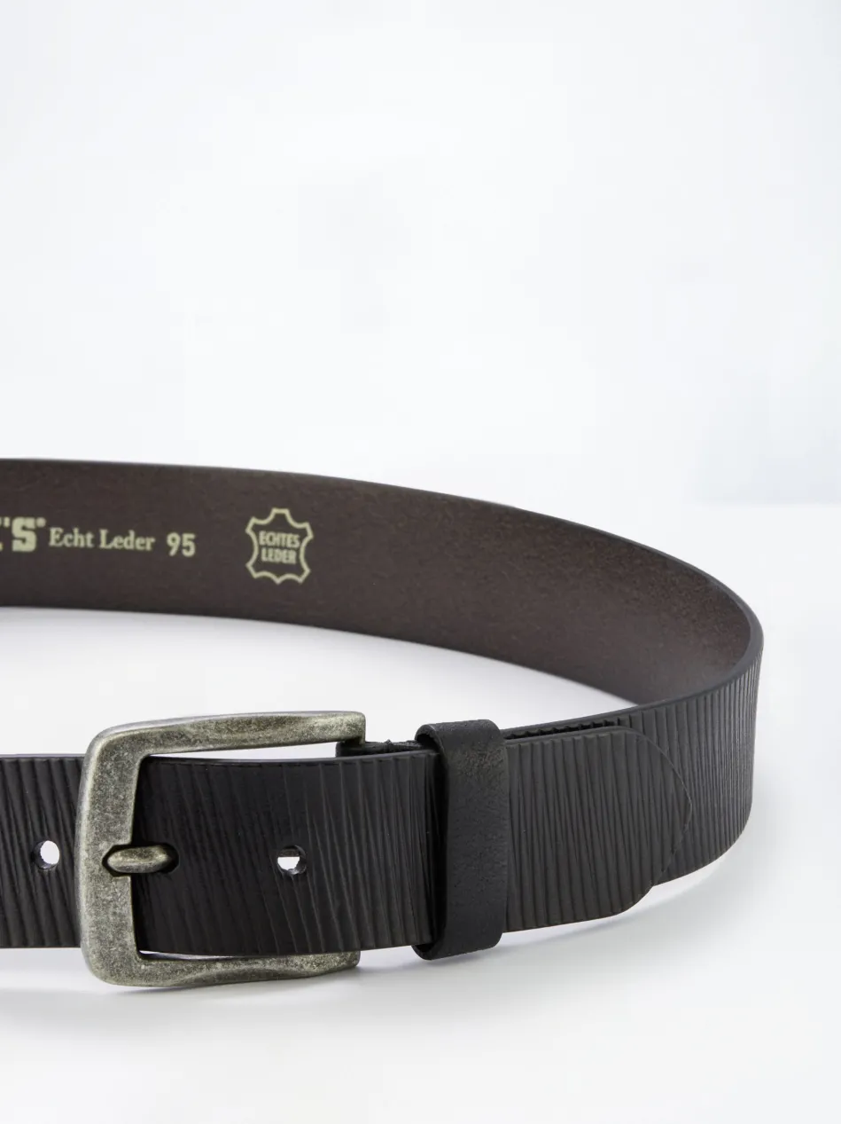 Dieser Herren Ledergürtel mit gestreiftem Muster ist ein stylisches Accessoire und ein echter Hingucker. Der Gürtel hat eine normale Breite und das besonders hochwertige Echtleder ist langlebig und unterstützt den angenehmen Tragekomfort.