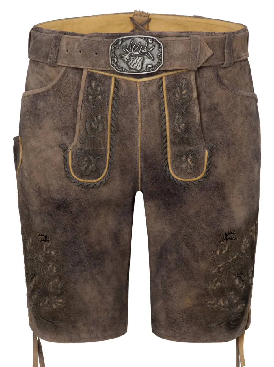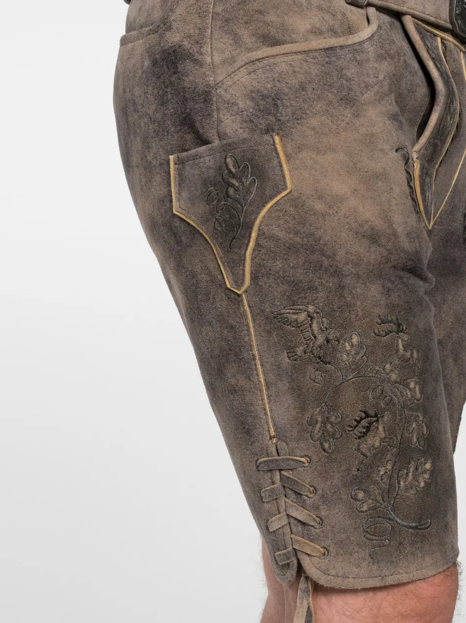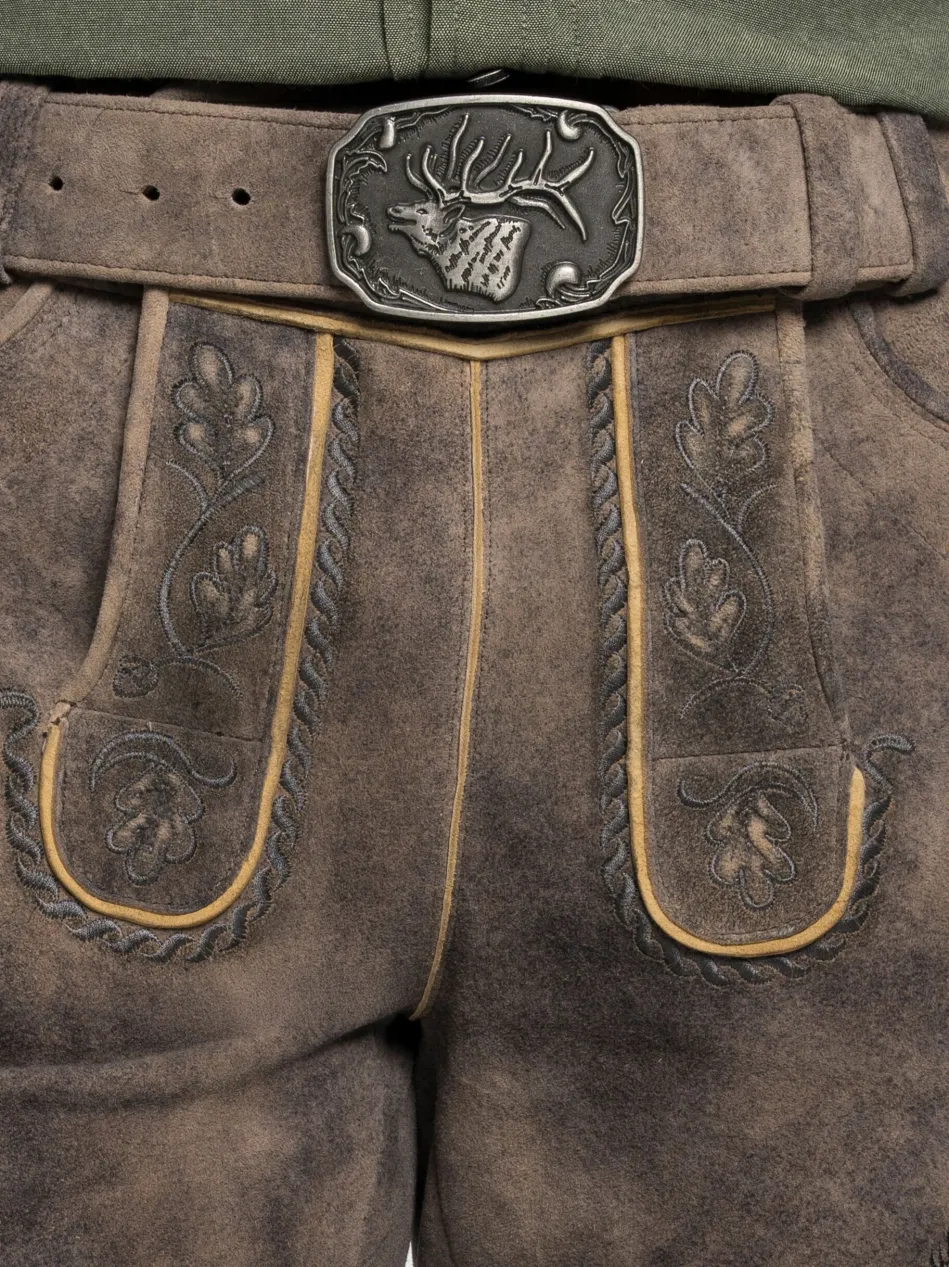 Für einen ehrlichen und traditionellen Trachtenlook steht die Lederhose ‚Fürstenzell‘ für Herren von Spieth & Wensky. Sie besticht durch ihre Vielfalt an Details, welche Stickerein vom Latz bis zu den Beinenden beinhalten. Das modische Hightligt ist die detaillierte und elegante Gürtelschnalle mit Hirschkopf-Emblem. Schnürungen an den Beinenden vollenden das Design dieser Trachtenhose und machen sie zum Must-Have für Trachtenliebhaber.