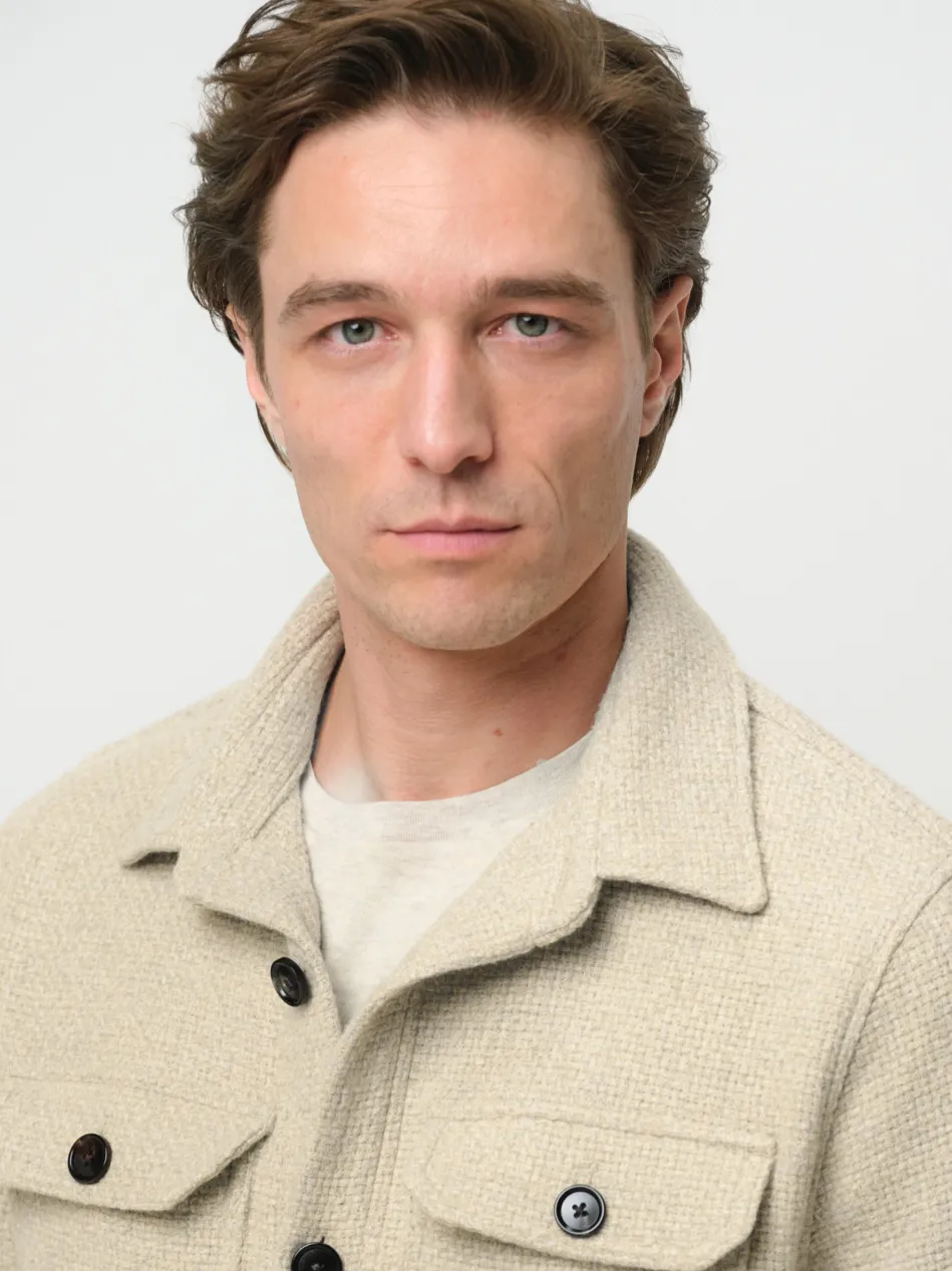 Das Overshirt ist eine Kombination aus einem Overshirt und einem Hemd. Tragen Sie dieses Overshirt über einem T-Shirt.