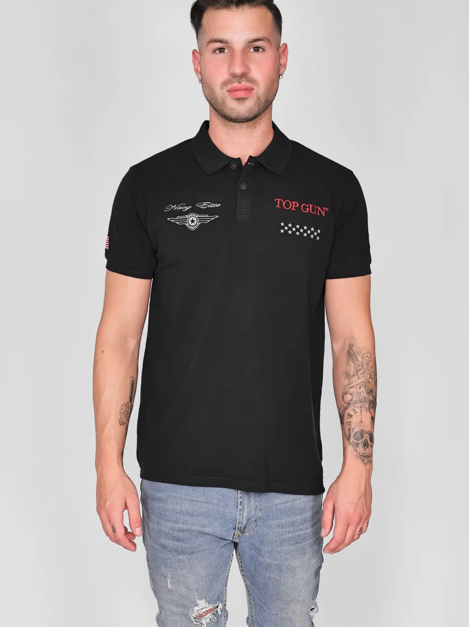 Das Shirt besitzt einen angenehmen Hemdkragen, der durch zwei Knöpfe geschlossen werden kann. Durch die moderne Passform ist es besonders angenehm zu tragen. Schöne Top Gun Stickereien sind auf der Vorderseite und an den Ärmeln angebracht und verleihen diesem Polo einen unvergleichlichen Look.