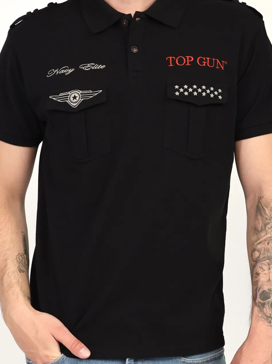 Das Shirt besitzt einen angenehmen Hemdkragen, der durch zwei Knöpfe geschlossen werden kann. Durch die moderne Passform ist es besonders angenehm zu tragen. Schöne Top Gun Stickereien und Brusttaschen sind auf der Vorderseite angebracht und verleihen diesem Polo dein unvergleichlichen Look.