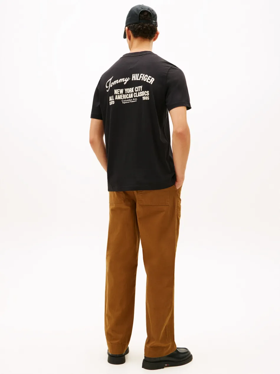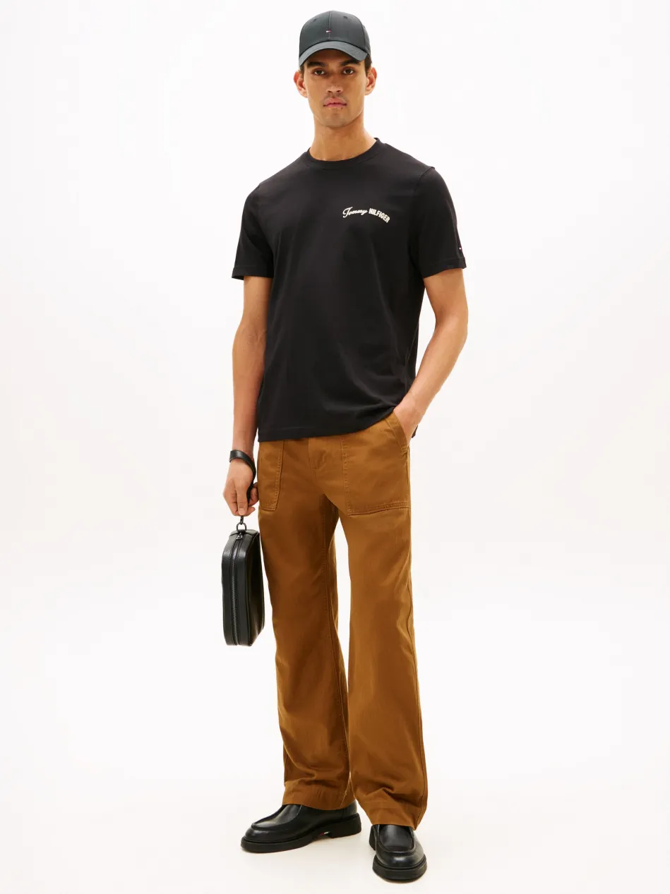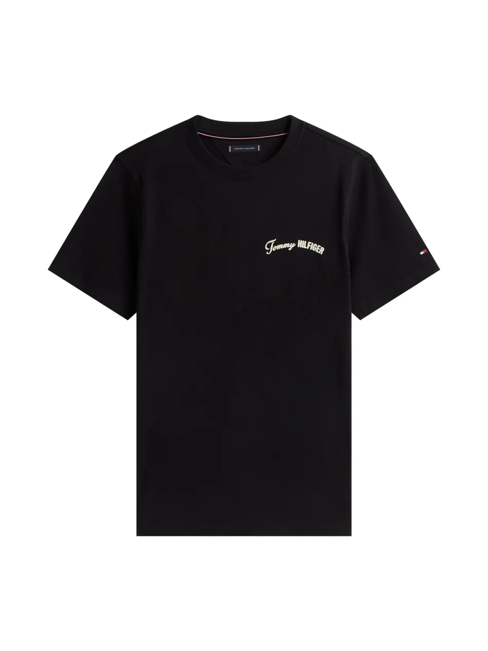 Cooles Label-Must-have: Das Tommy Hilfiger Jerseyshirt zeigt sich im coolen Logo-Design mit ausdrucksstarken Flockprint-Schriftzügen an der Brust- und Rückenpartie.