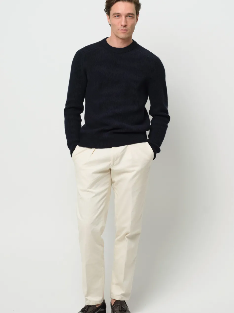 Dieser Rundhalsausschnitt hat eine grob gestrickte Rippstruktur und besteht aus Wolle. Perfekt für einen Lagenlook und Wärme an kälteren Tagen.