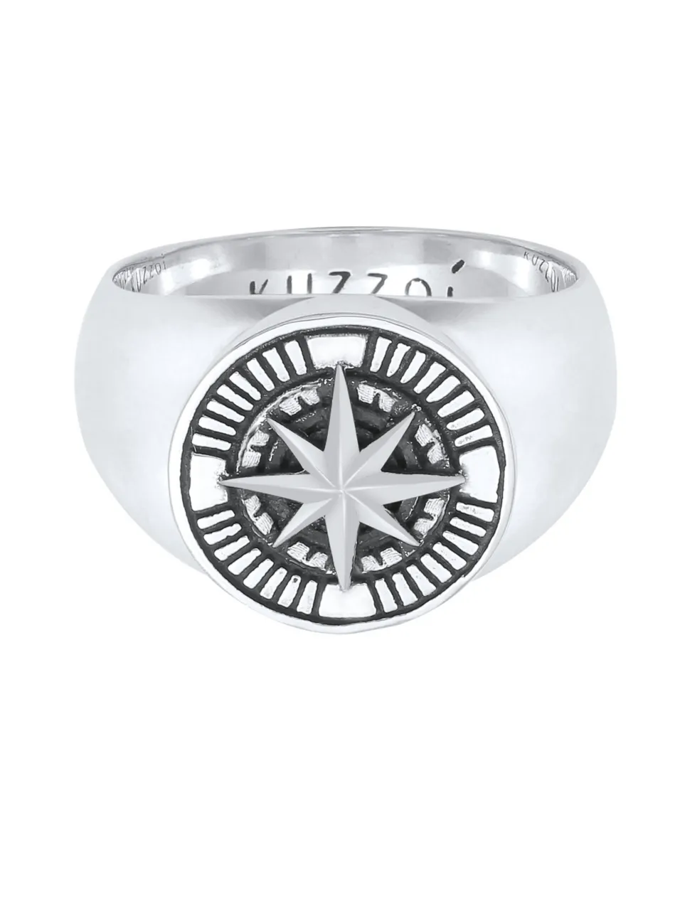 Mit diesem außergewöhnlichen Siegelring erhält dein Style einen maritimen Touch. Die runde Oberfläche des robusten Rings, wird von einem klassischen Kompass Symbol geziert. Dieses maskuline Schmuckstück ist ein lässiges Accessoire für Weltenbummler und Seefahrer. Ein markanter Fingerring für den Trend liebenden Mann. Dieses exklusive Schmuckstück wird in einer eleganter Geschenk-Box geliefert.