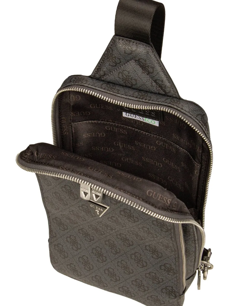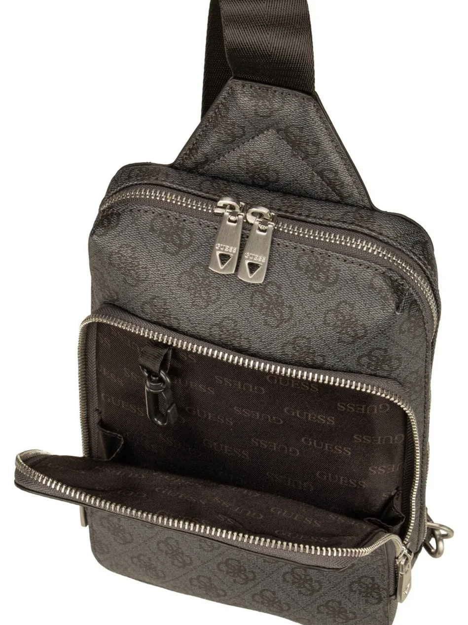 Stylishe Sling Bag von Guess aus genarbtem Kunstleder mit Allover-Logoprint, praktisch und schick: das perfekte Everyday-Piece für deinen Look.