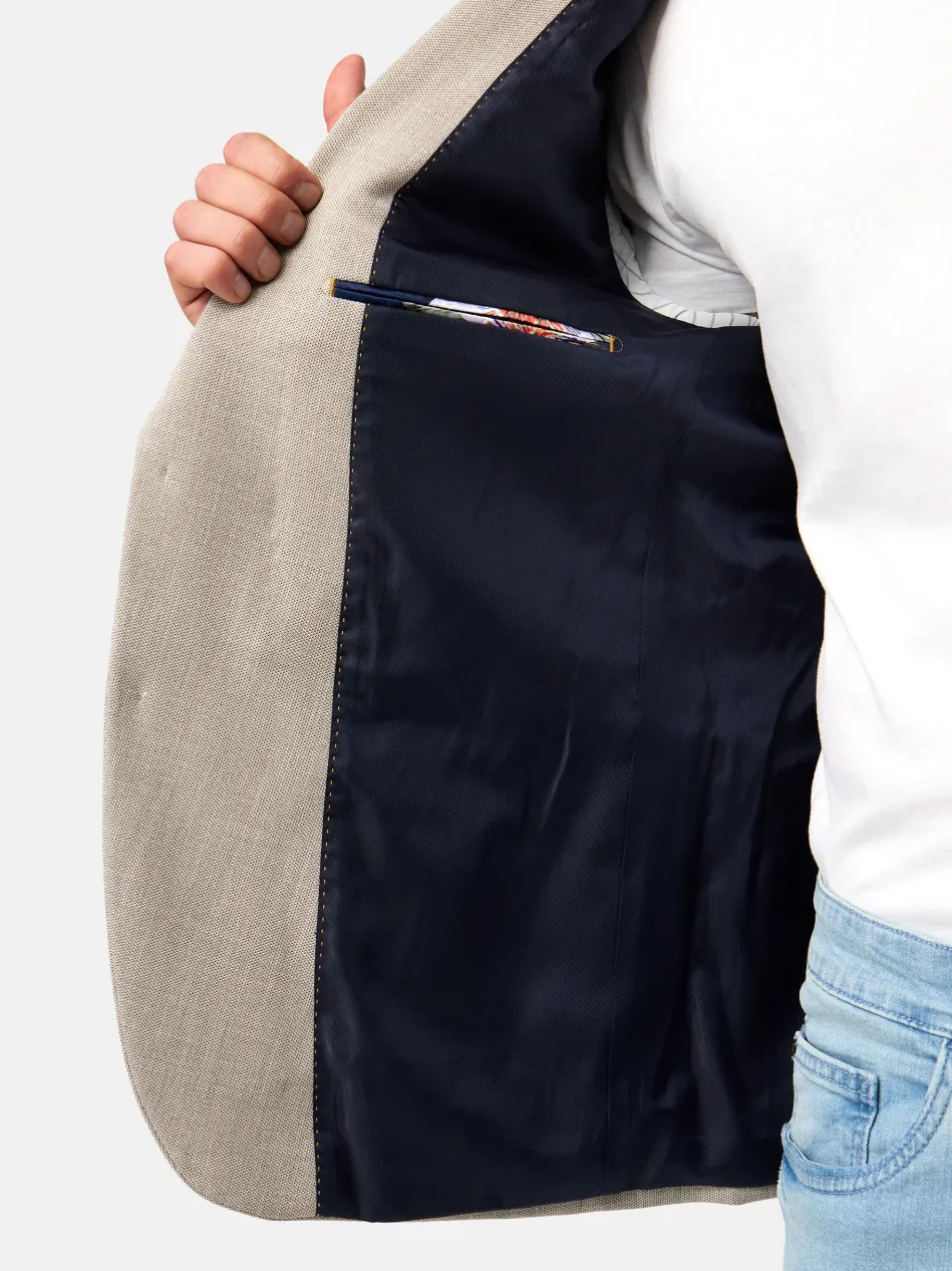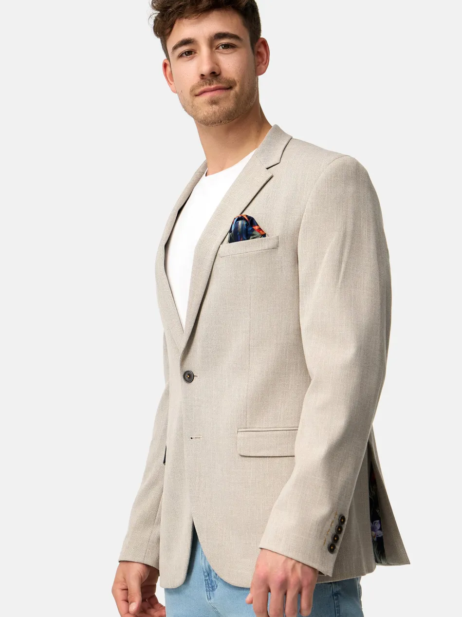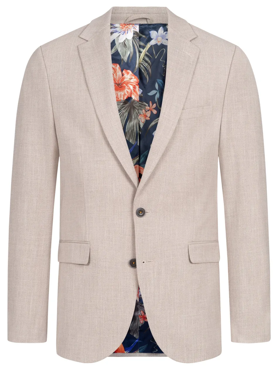 Dieses elegante Sakko überzeugt mit einem klassischen Schnitt und modernen Details und ist die ideale Wahl für stilbewusste Männer. Der taillierte Schnitt sorgt für eine schlanke Silhouette und betont die maskuline Figur, während das elastische Material einen angenehmen Tragekomfort garantiert. Das hochwertige Gewebe ist pflegeleicht und strapazierfähig – perfekt geeignet für formelle Anlässe oder als stilvolle Ergänzung für den Alltag. Besonderes Highlight ist das Innenfutter mit floraler Musterung, das dem Sakko eine modische Raffinesse verleiht und bei offenem Tragen für einen auffälligen Look sorgt. Das Modell ist mit klassischen Elementen wie Reverskragen, Knopfleiste, Klappentaschen und einer Brustleistentasche ausgestattet.