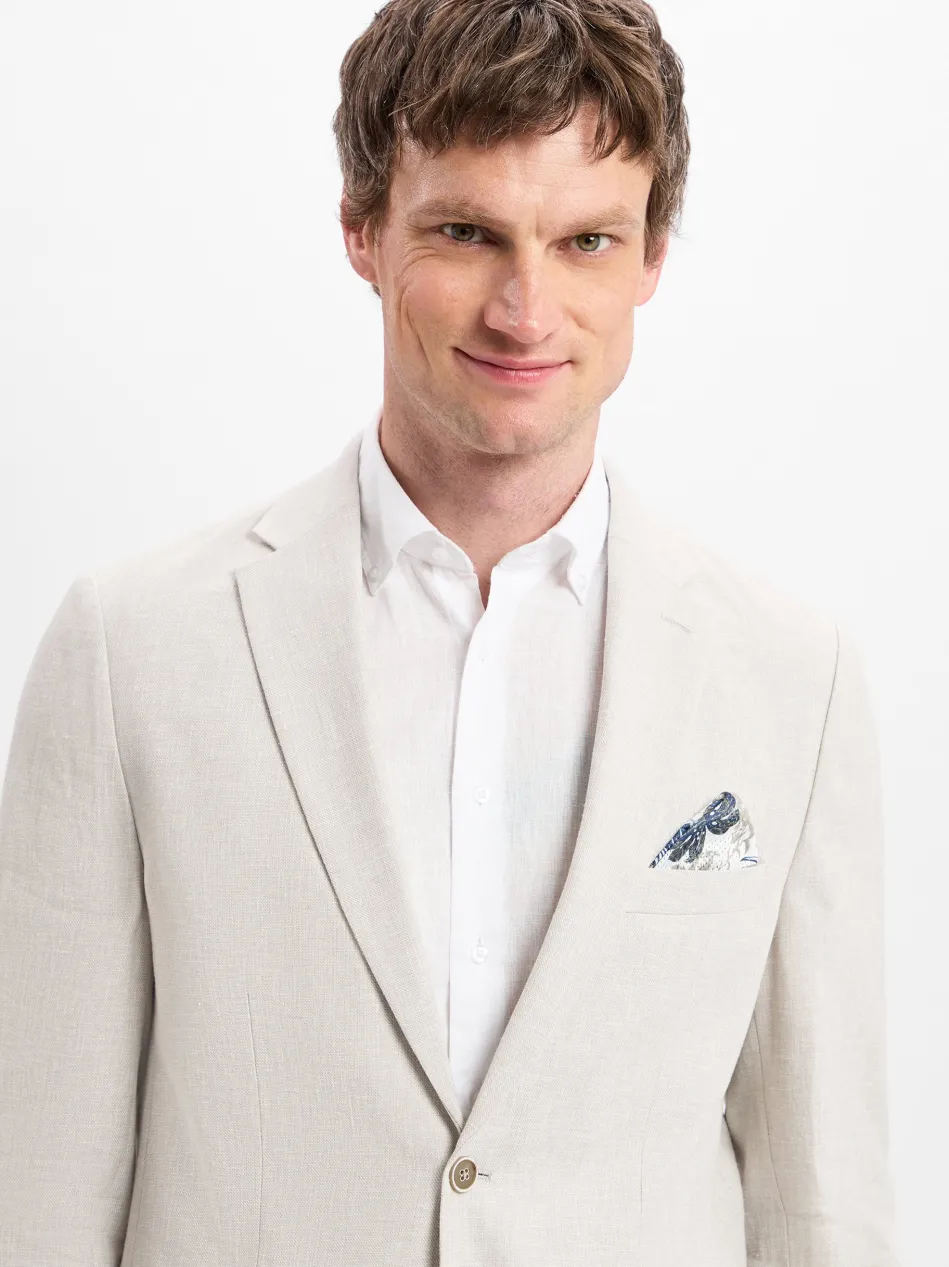 Das Sakko von Nils Sundström überzeugt mit einem ebenso stilvollen wie zeitlosen Design und gewährleistet dank des Leinenanteils einen besonders hohen Tragekomfort.