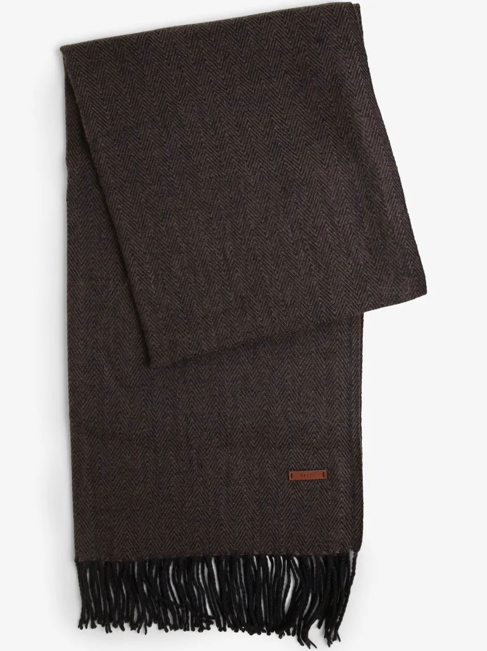 Feine Fransen vollenden das stilvolle Fischgrat-Design des Soho Schals von Barts.